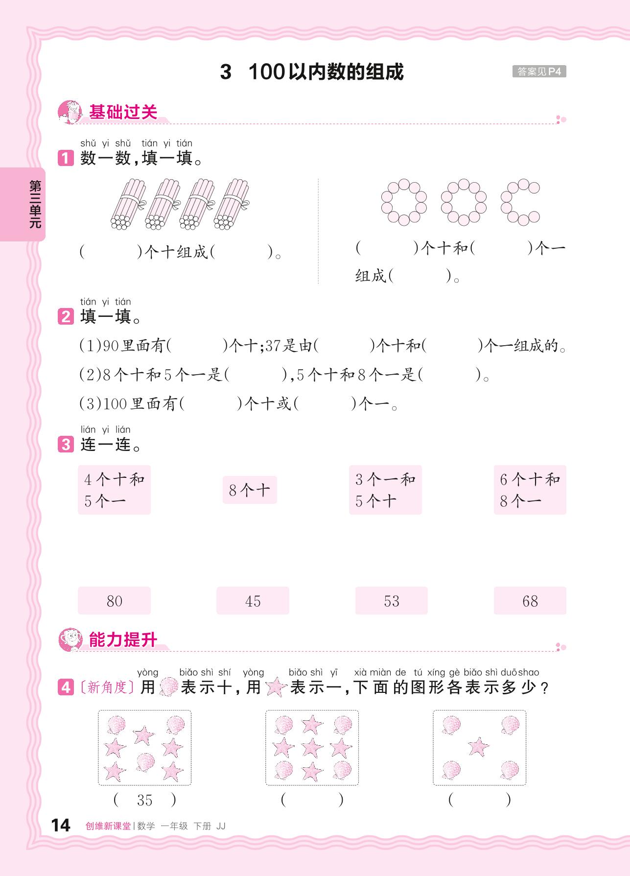 2024春下册一年级数学冀教版 第三单元 100以内数的认识——3. 100以内数的组成
