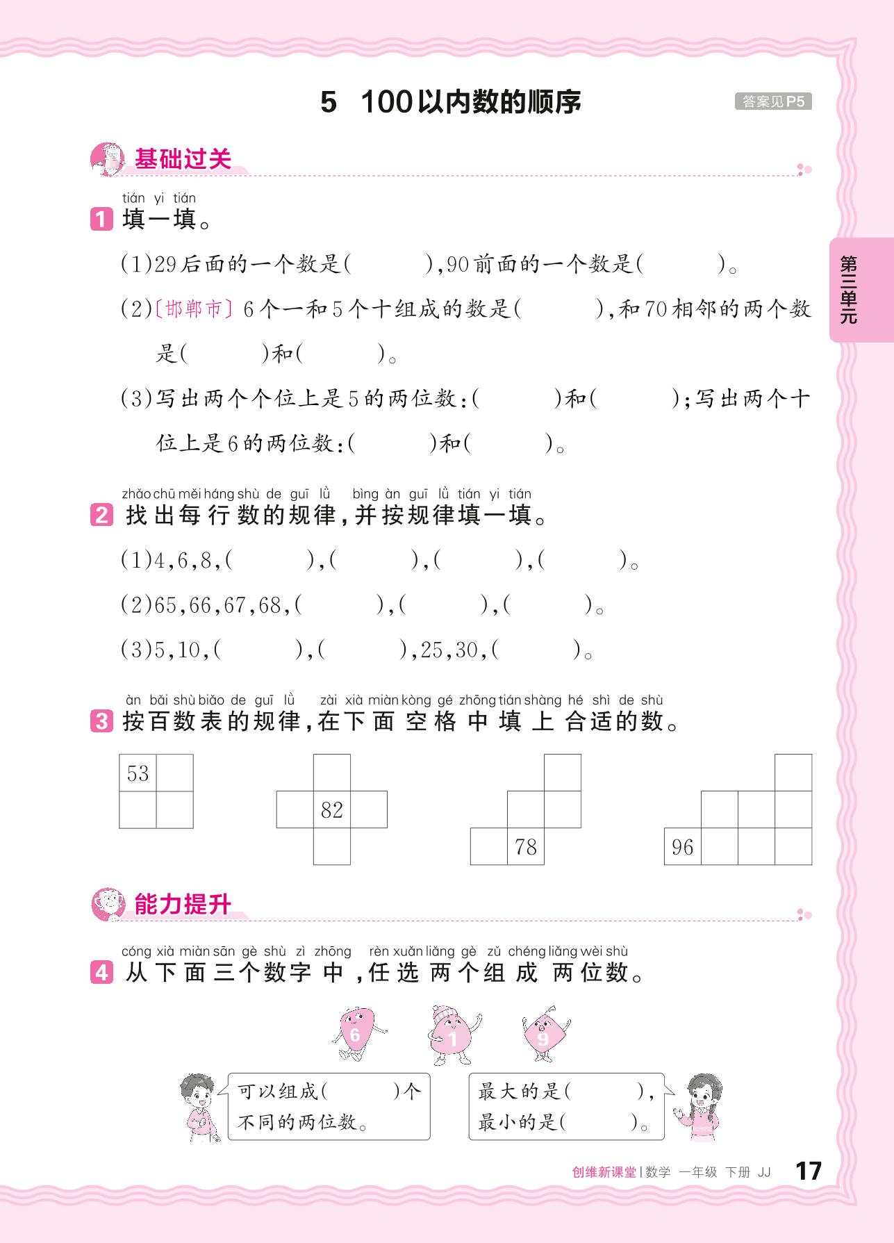 2024春下册一年级数学冀教版 第三单元 100以内数的认识——5. 100以内数的顺序