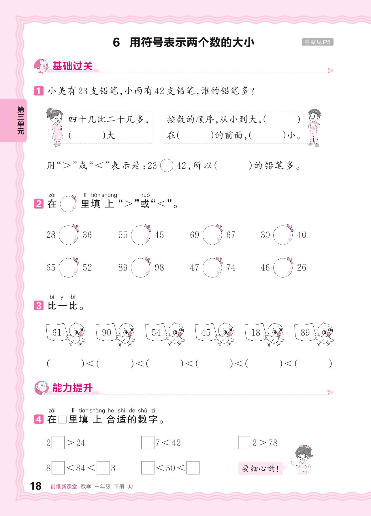 2024春下册一年级数学冀教版 第三单元 100以内数的认识——6. 用符号表示两个数的大小