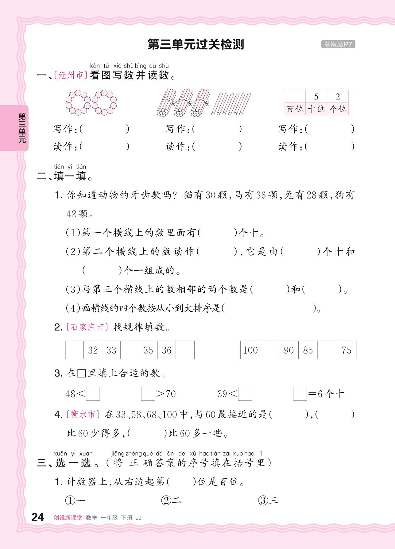 一年级数学冀教版下册单元卷
