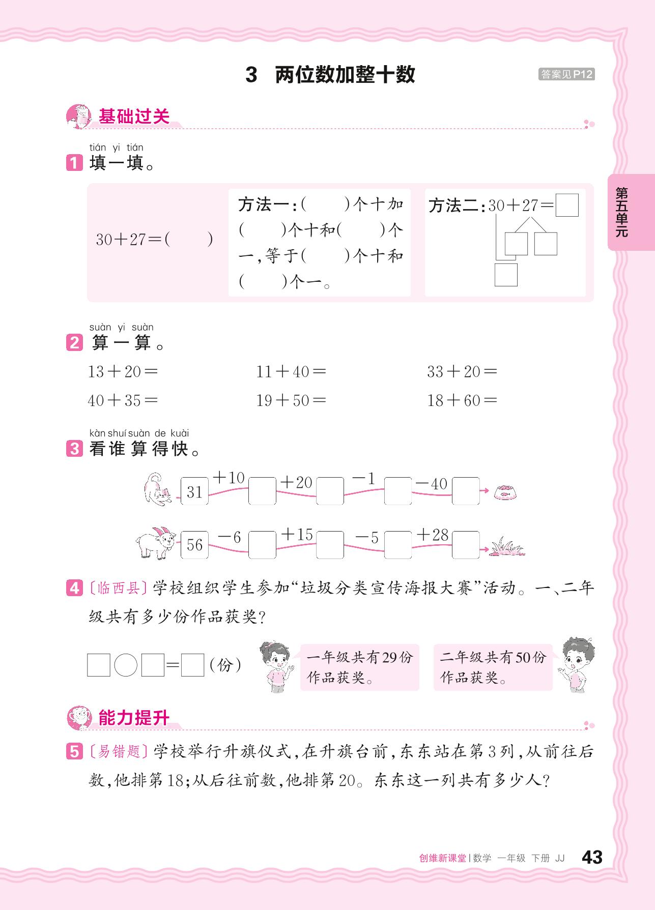 2024春下册一年级数学冀教版 第五单元 100以内的加法和减法(一)——3. 两位数加整十数