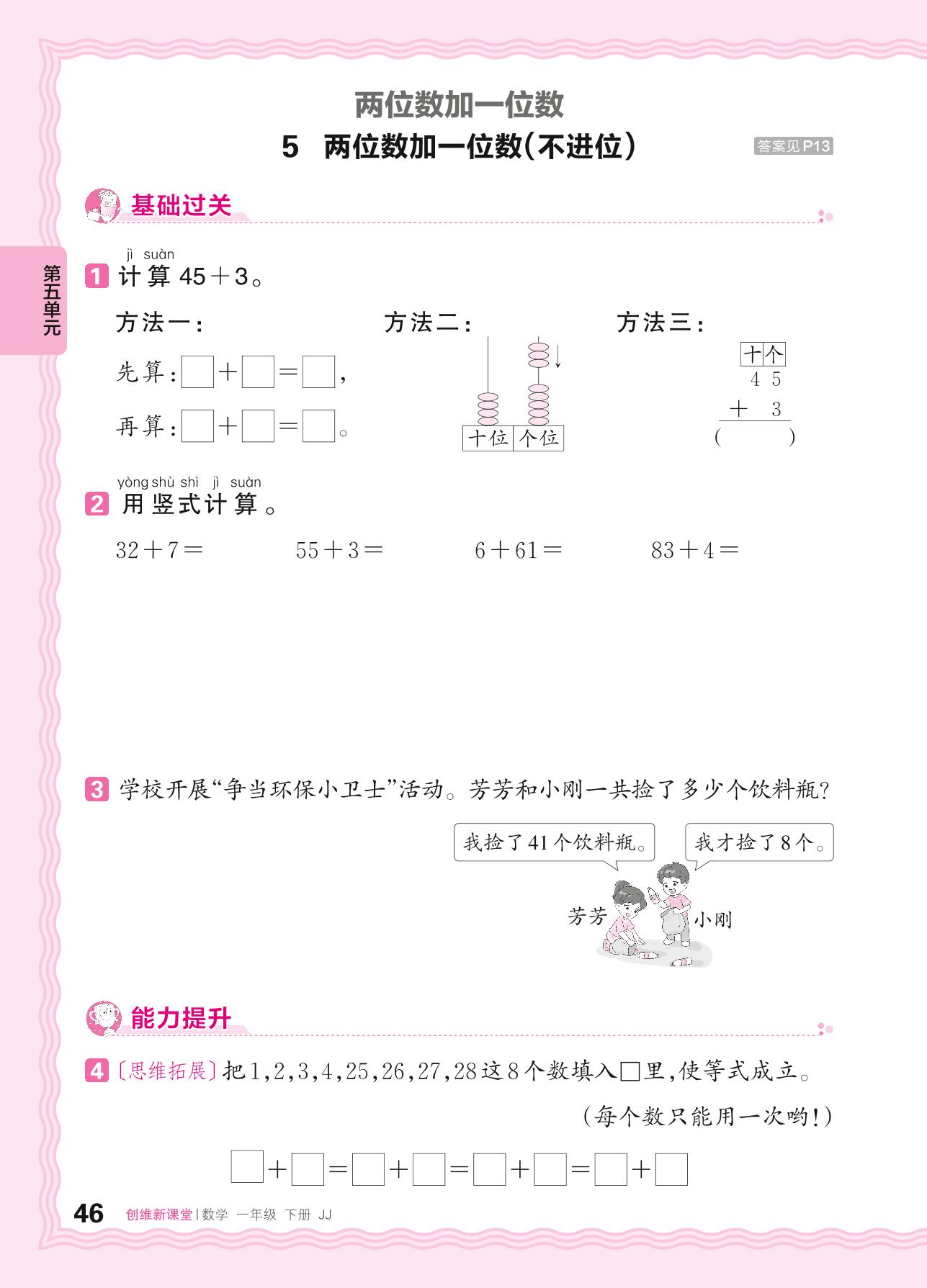 2024春下册一年级数学冀教版 第五单元 100以内的加法和减法(一)——5. 两位数加一位数(不进位)