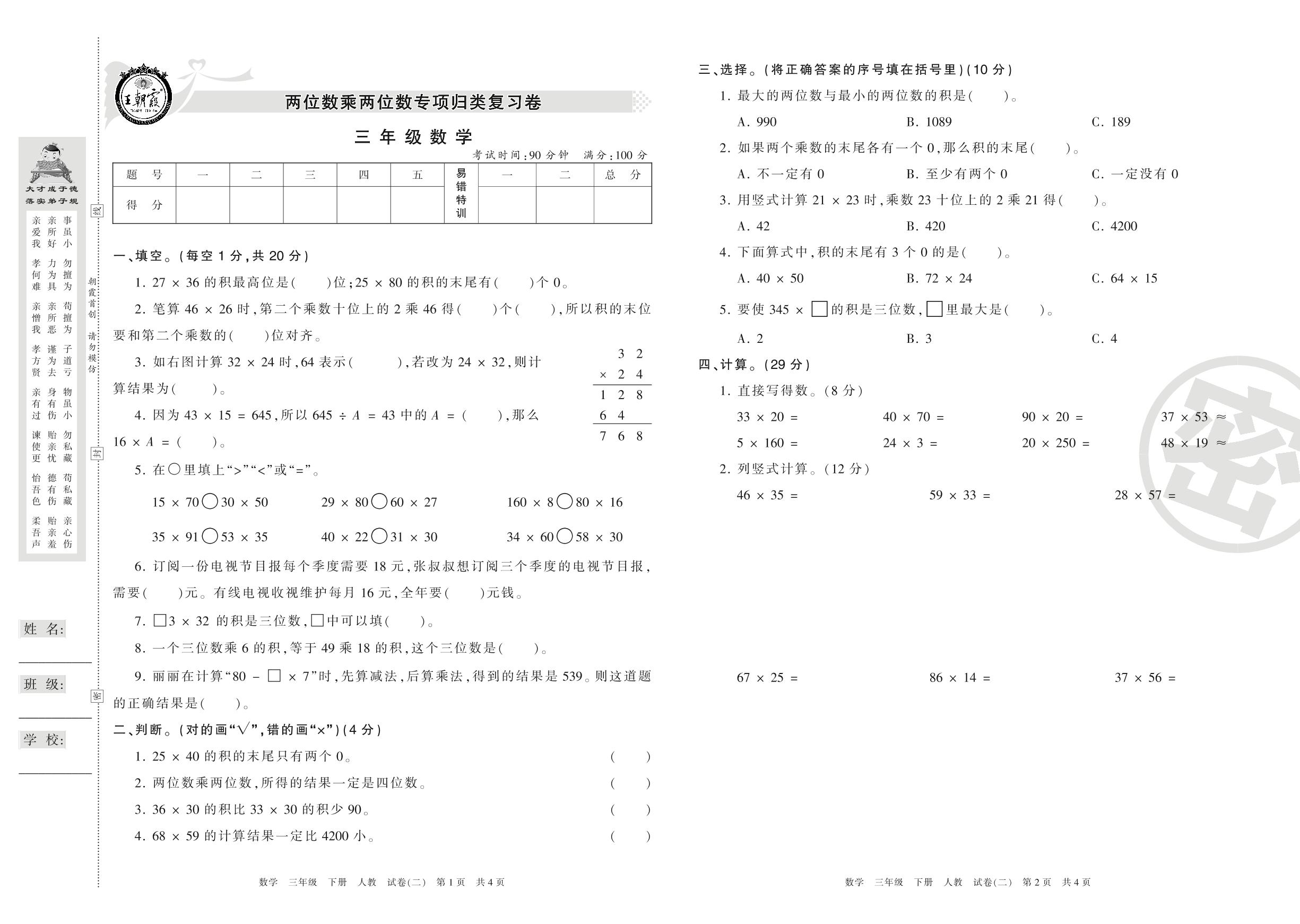 王朝霞期末专项卷三年级下册数学(人教版)_R210804100956【2】