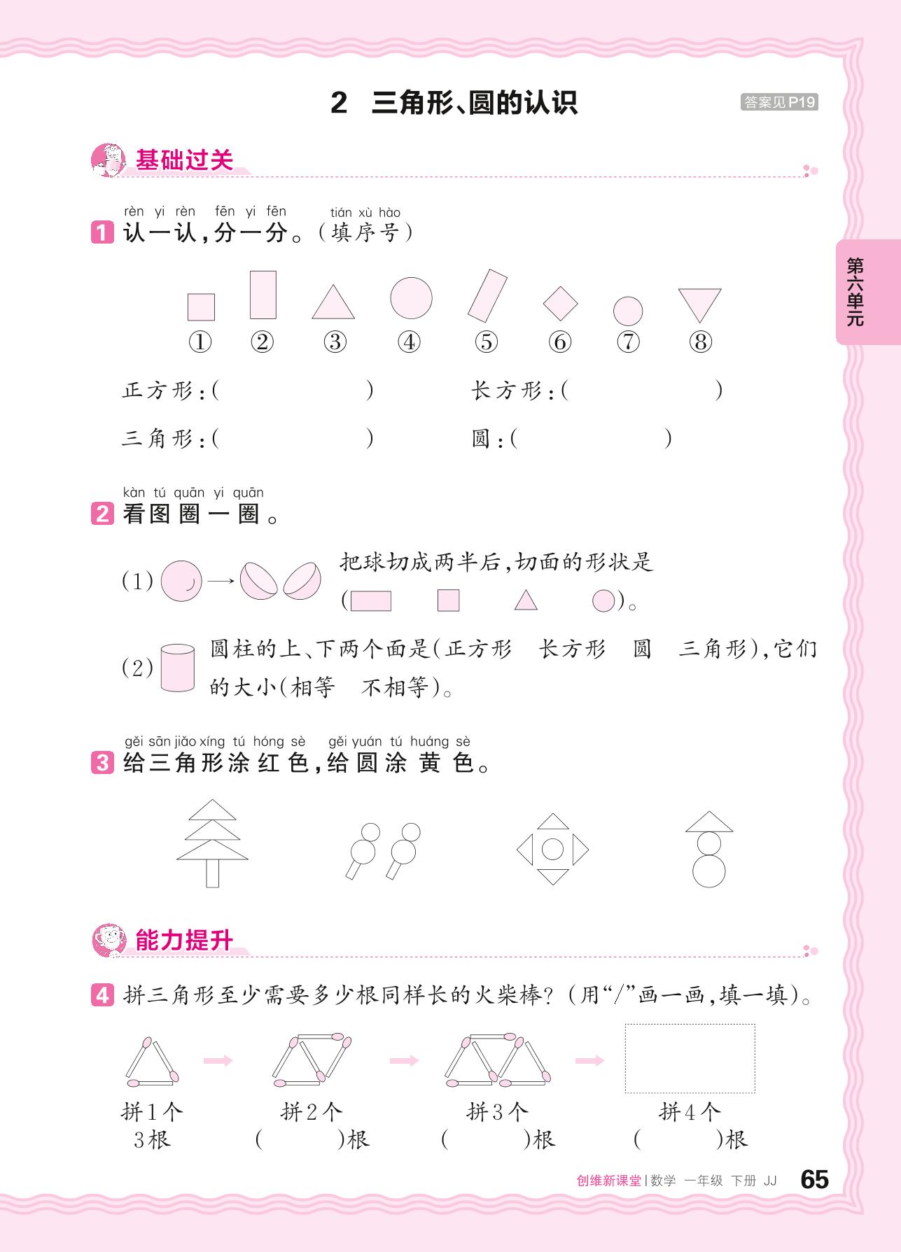 2024春下册一年级数学冀教版 第六单元 认识图形(二)——2. 三角形、圆的认识