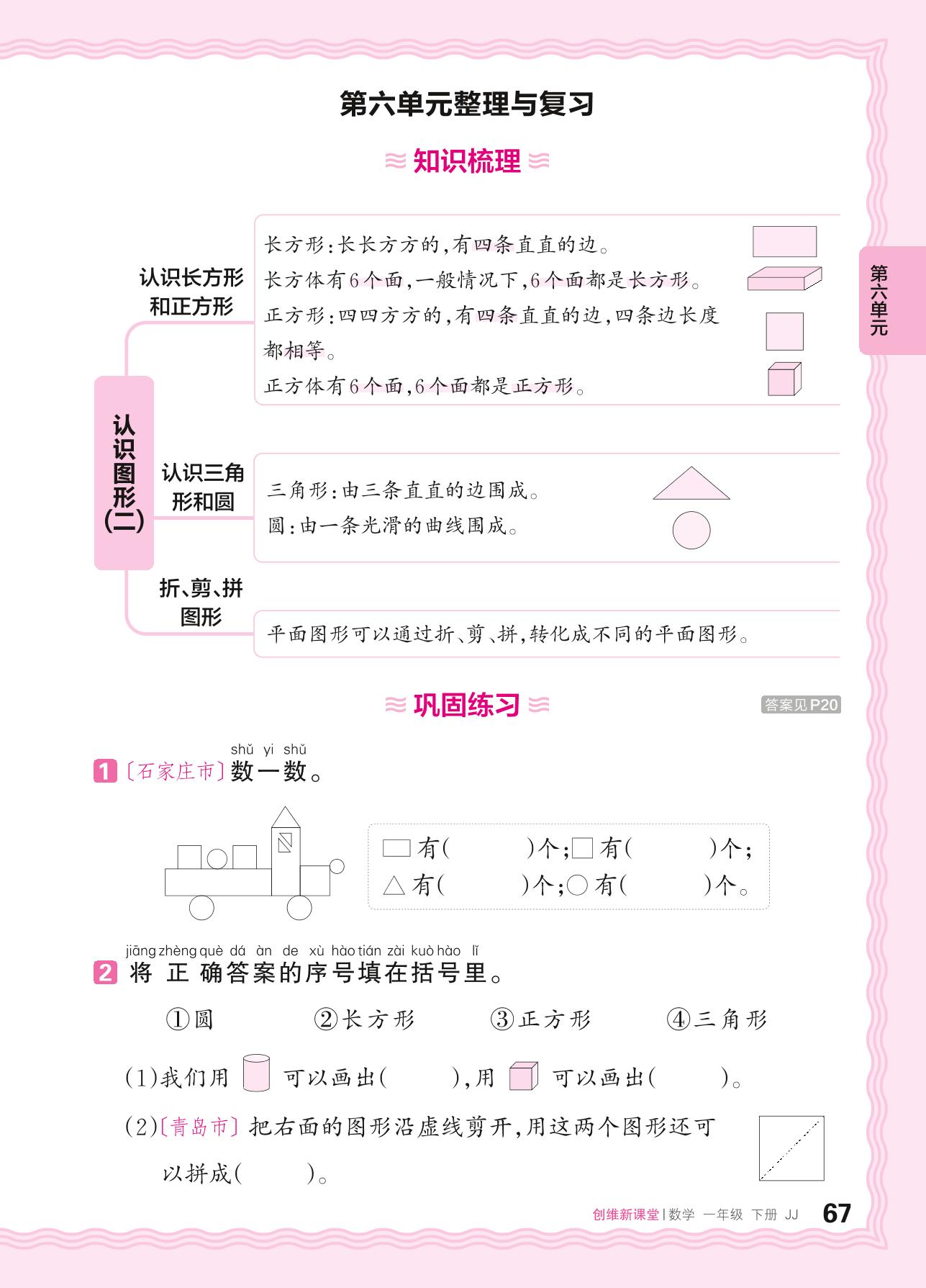 2024春下册一年级数学冀教版 第六单元整理与复习