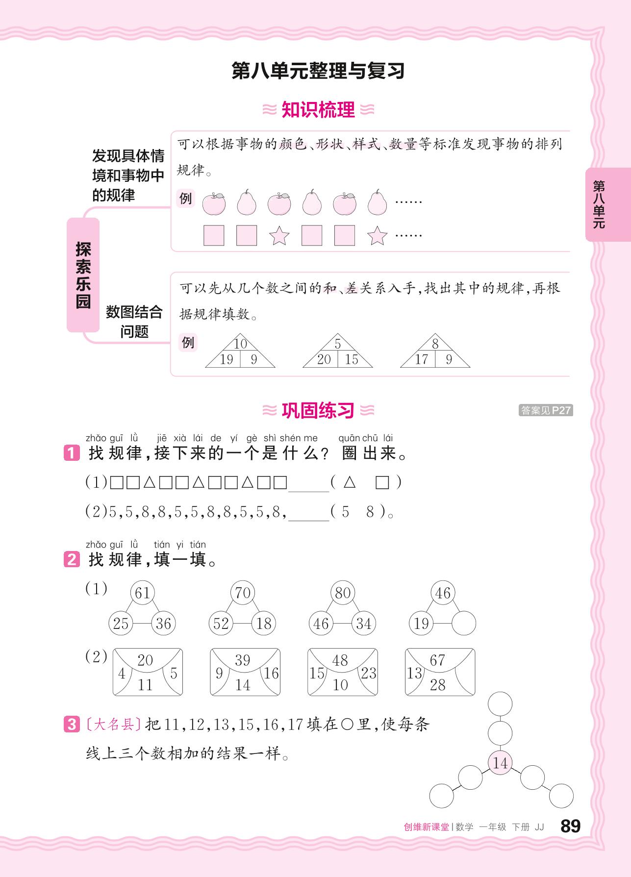 2024春下册一年级数学冀教版 第八单元整理与复习