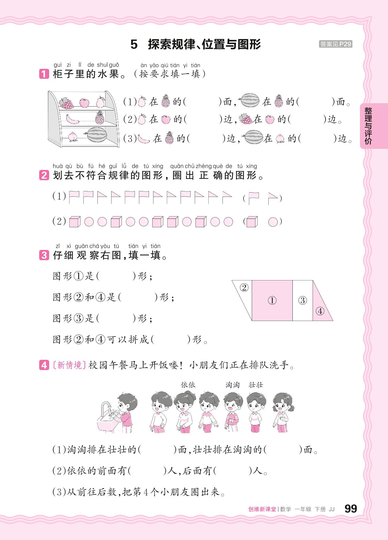 2024春下册一年级数学冀教版 整理与评价——5. 探索规律、位置与图形