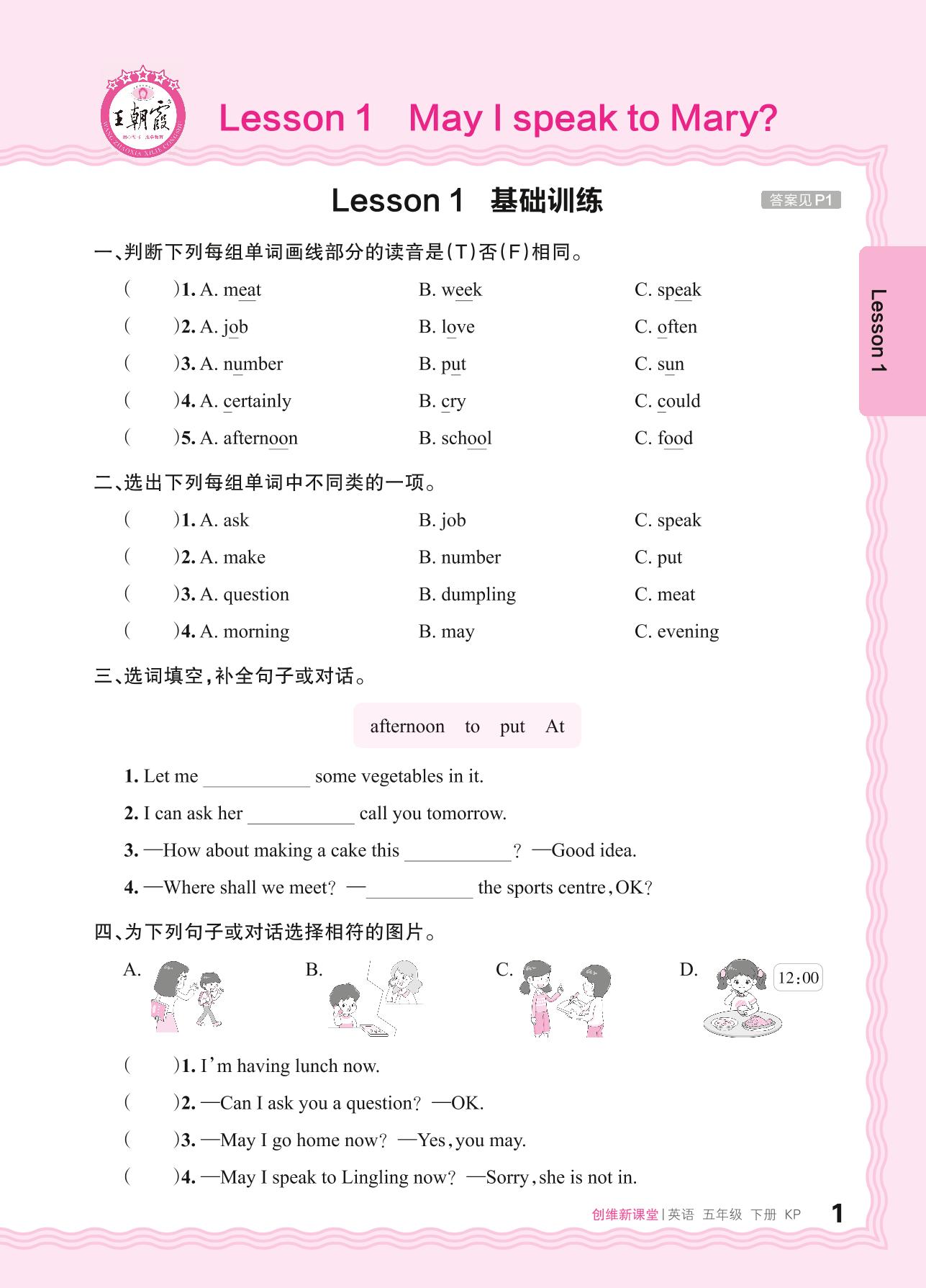 2024春下册五年级英语科普版 Lesson 1 May I speak to Mary?基础训练