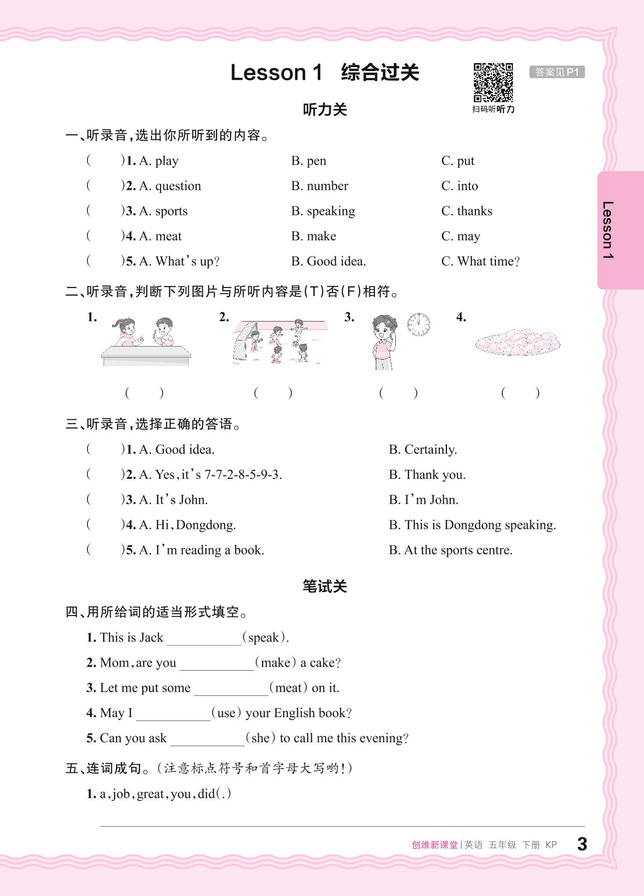 2024春下册五年级英语科普版 Lesson 1 May I speak to Mary?综合过关