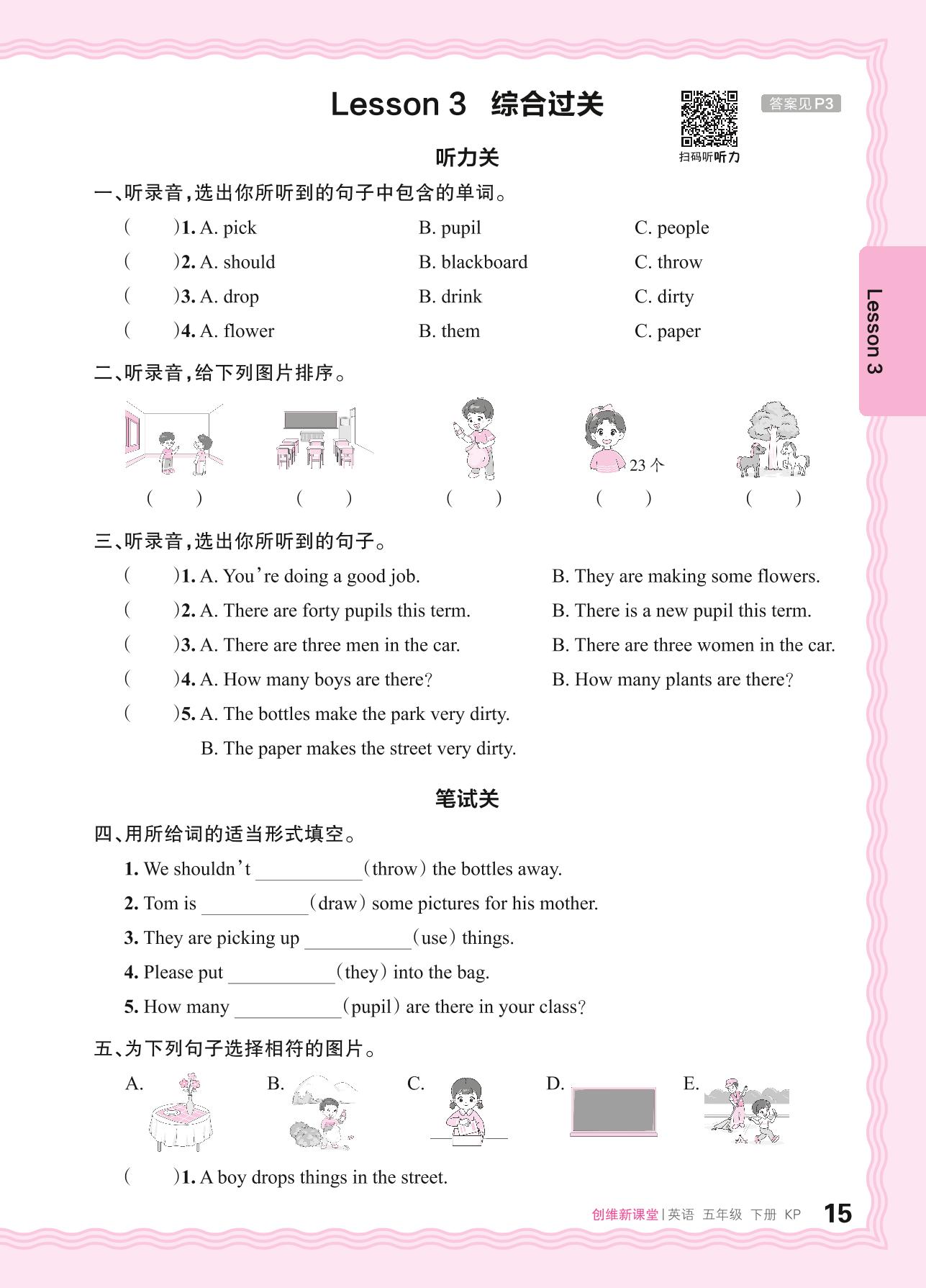 2024春下册五年级英语科普版 Lesson 3 How many pupils are there?综合过关