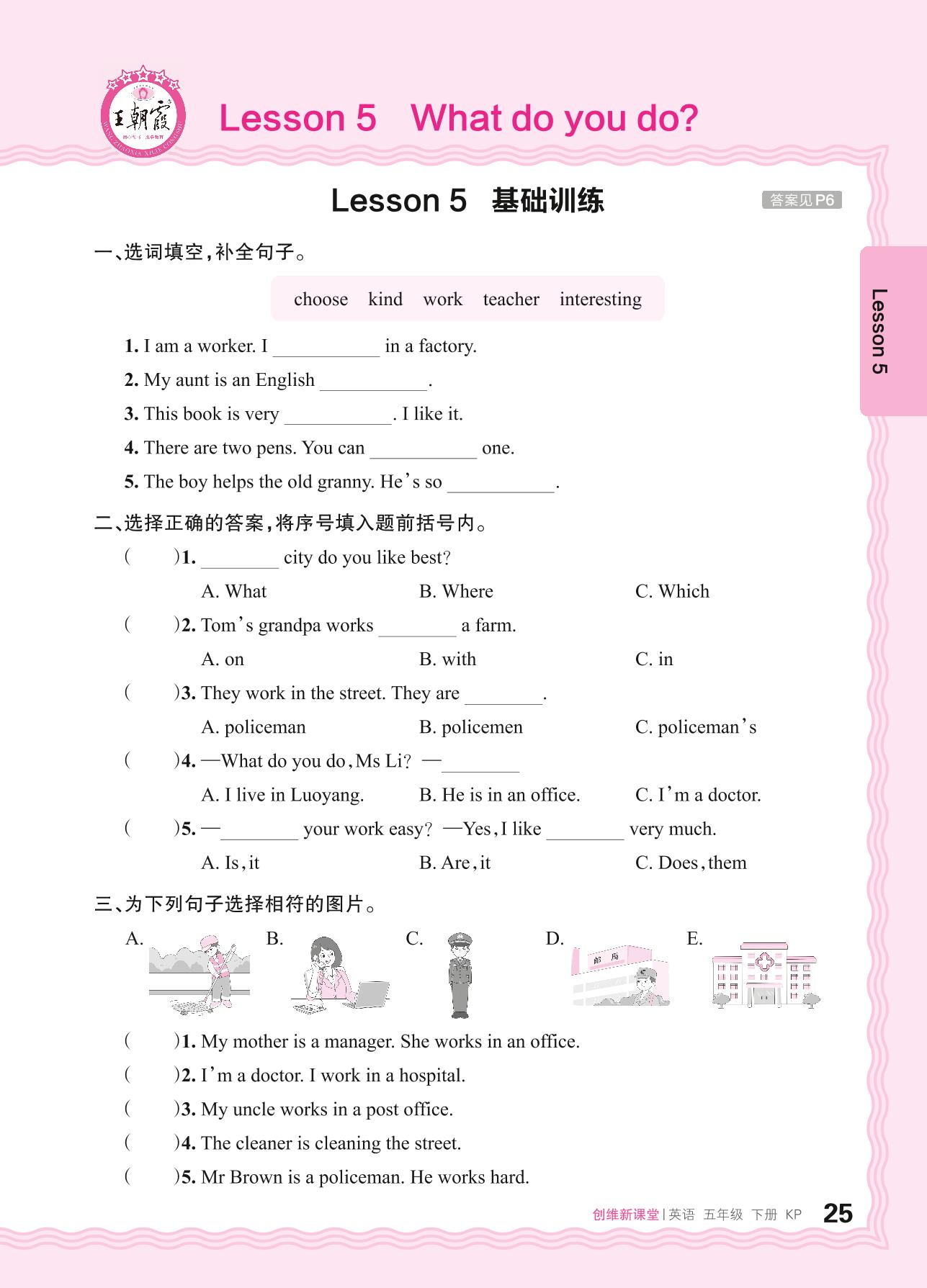 2024春下册五年级英语科普版 Lesson 5 What do you do?基础训练