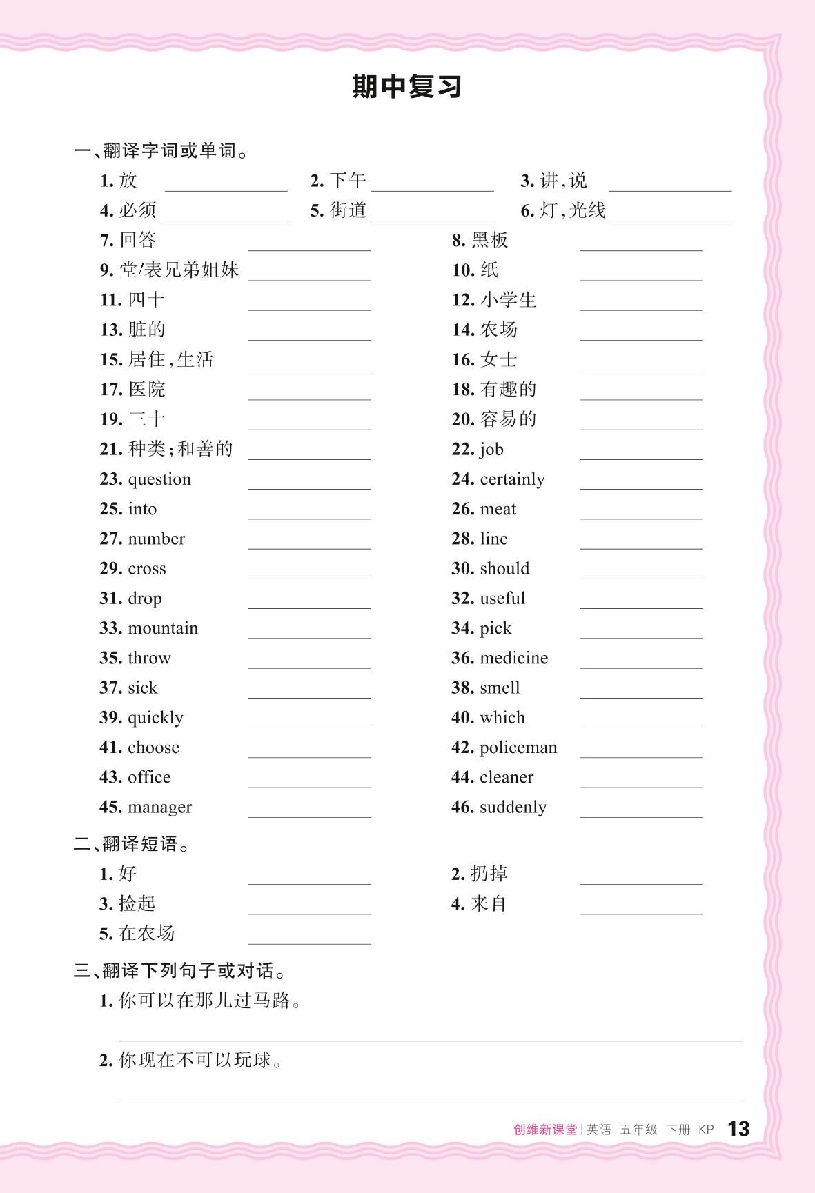 2024春下册五年级英语科普版 期中复习