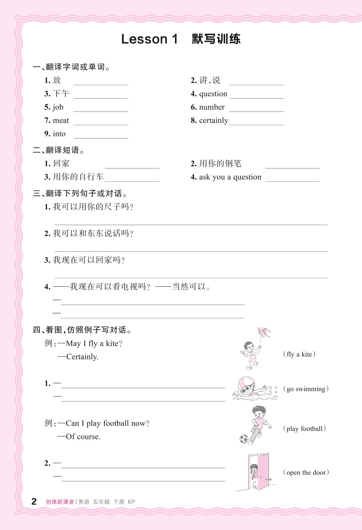 2024春下册五年级英语科普版 Lesson 1 默写训练
