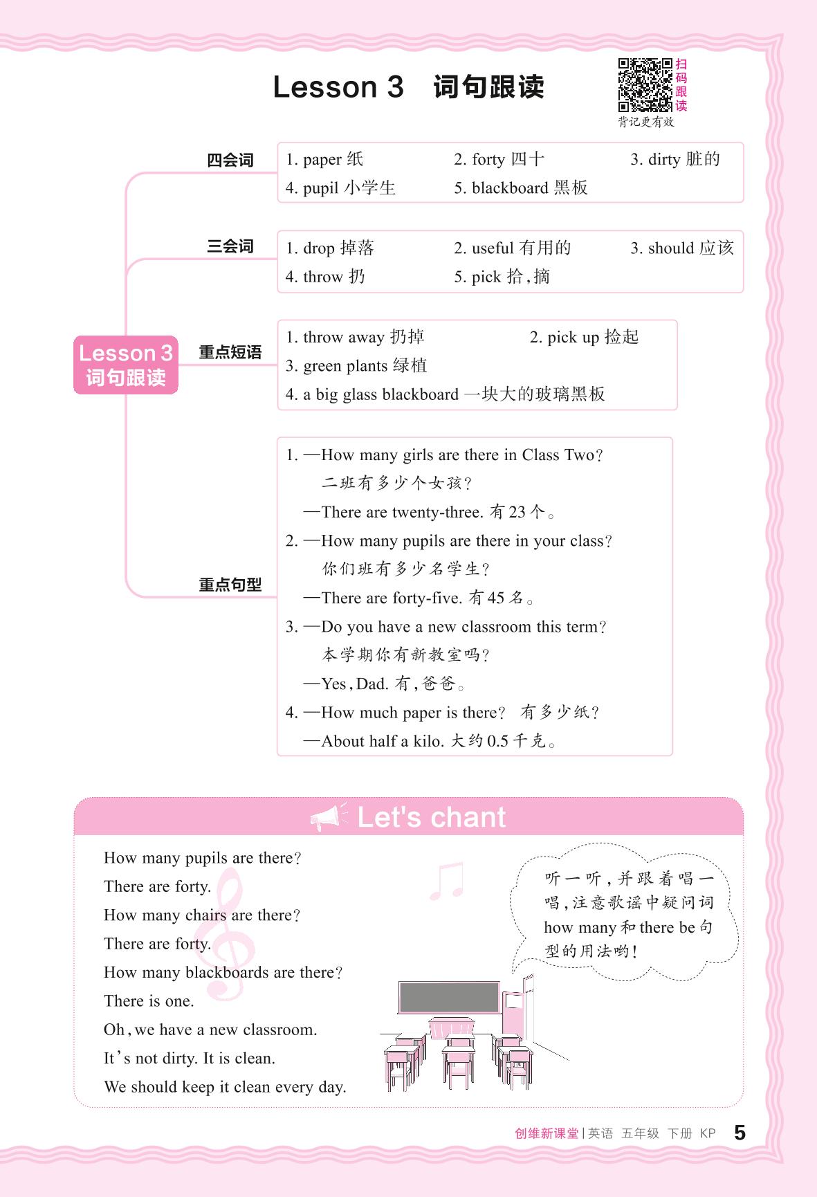 2024春下册五年级英语科普版 Lesson 3 词句跟读