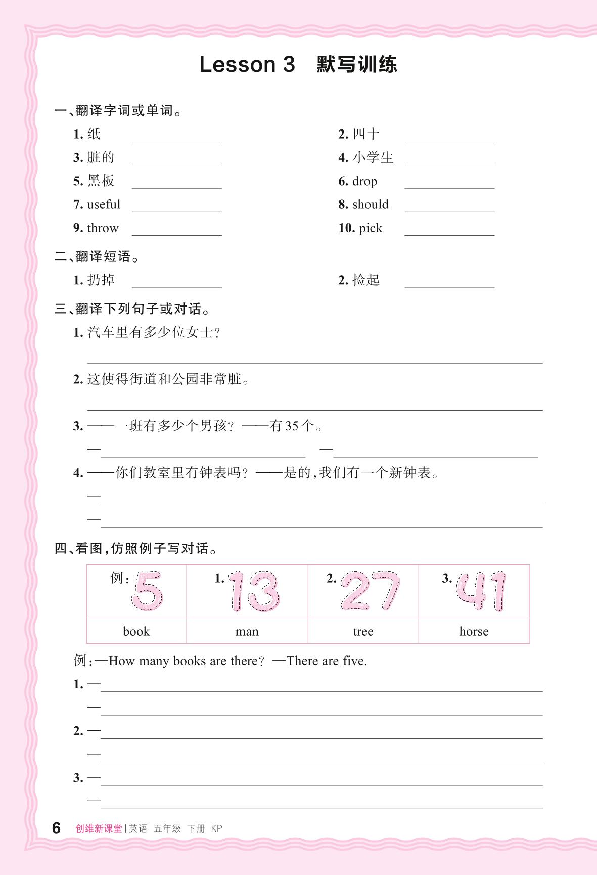 2024春下册五年级英语科普版 Lesson 3 默写训练