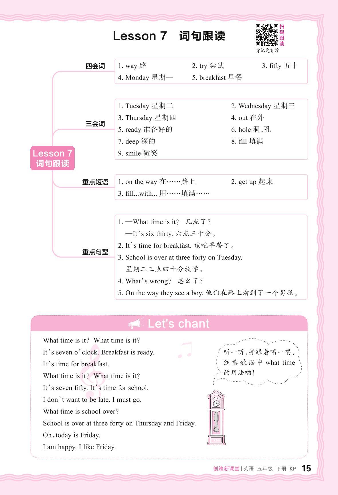 2024春下册五年级英语科普版 Lesson 7 词句跟读