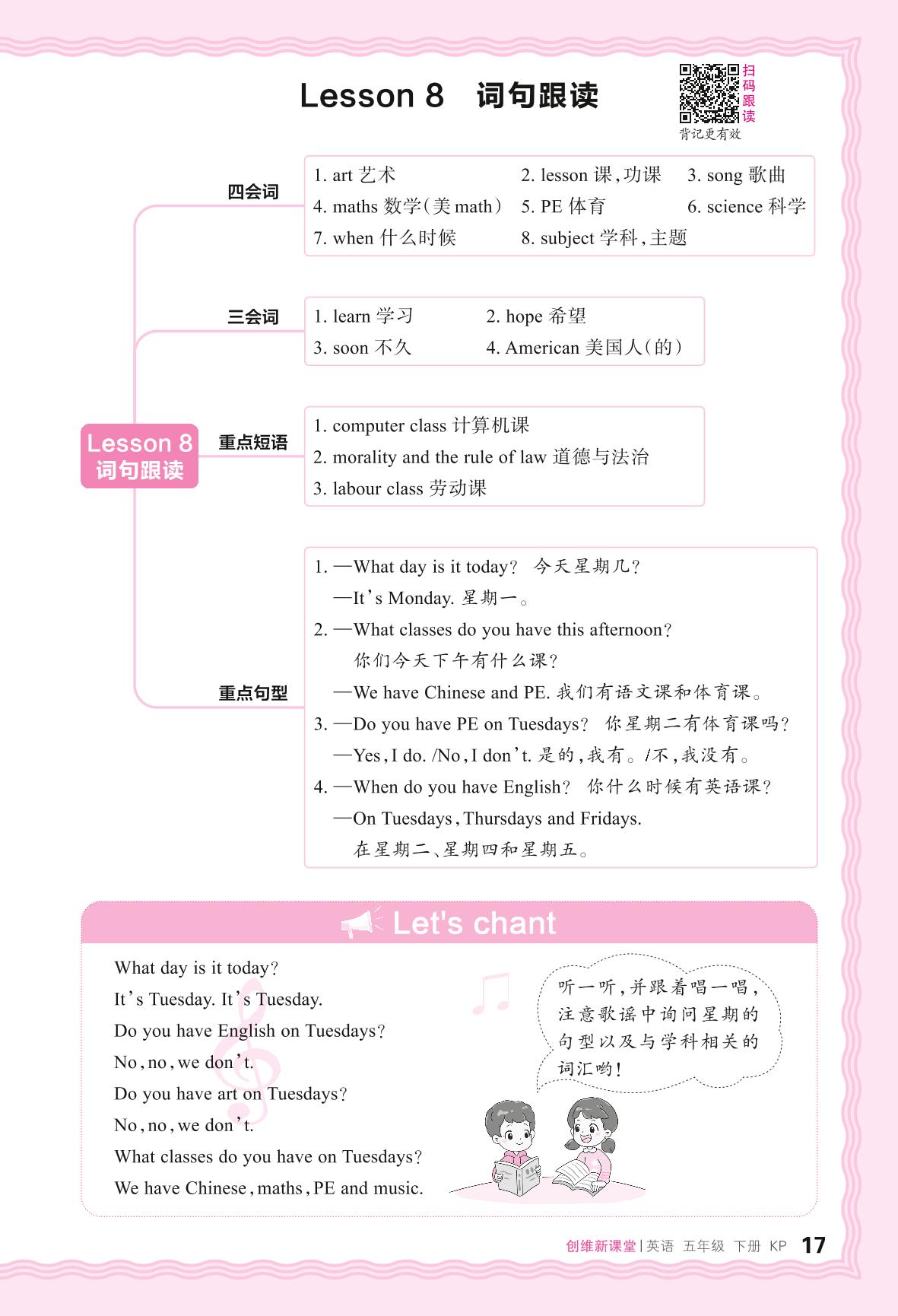2024春下册五年级英语科普版 Lesson 8 词句跟读