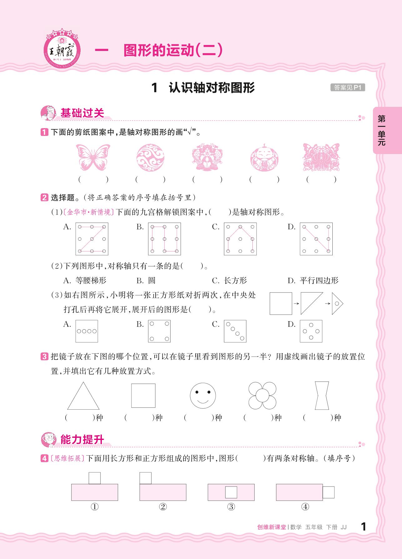 2024春下册五年级数学冀教版 第一单元 图形的运动(二)——1. 认识轴对称图形