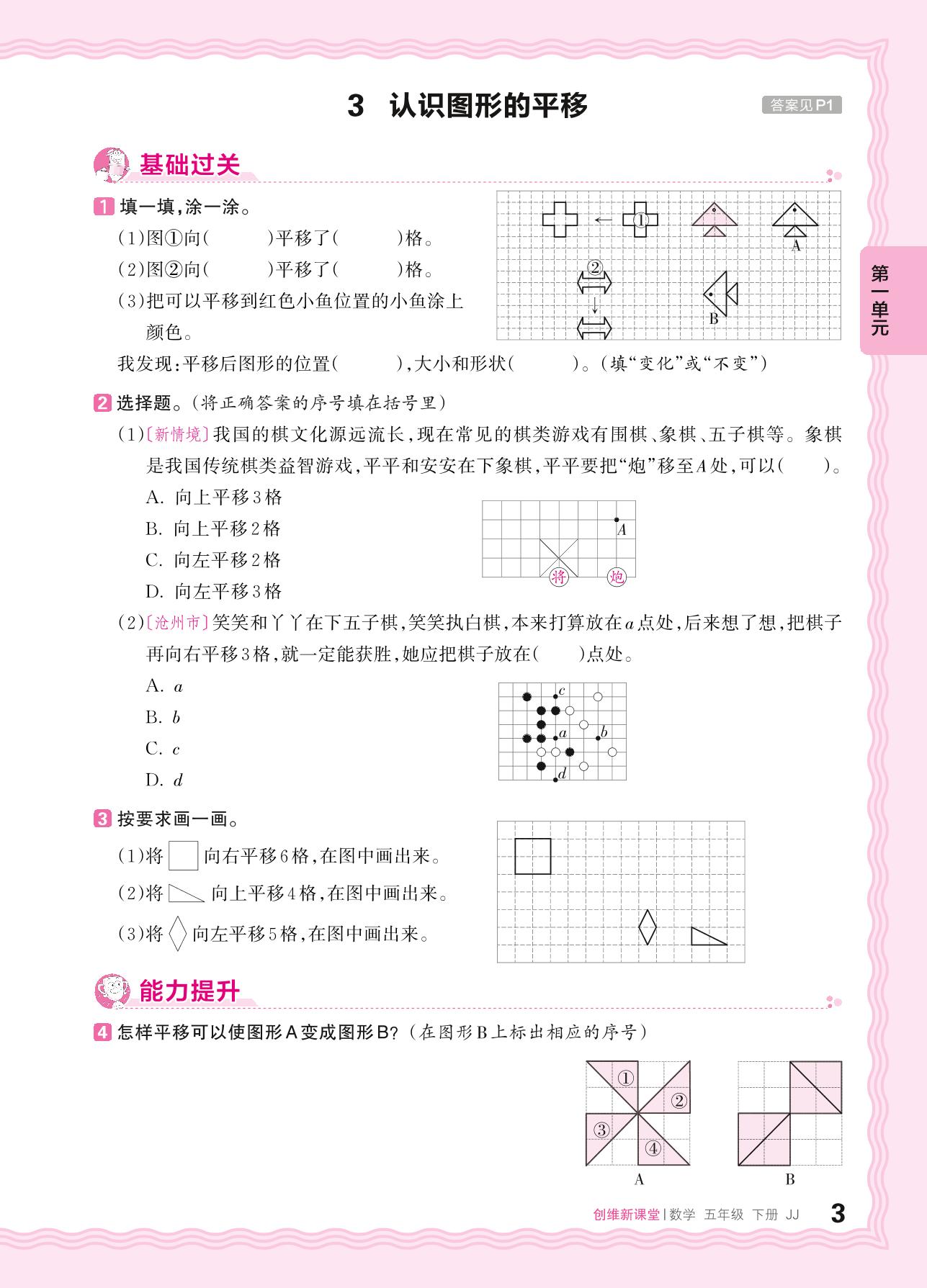 2024春下册五年级数学冀教版 第一单元 图形的运动(二)——3. 认识图形的平移