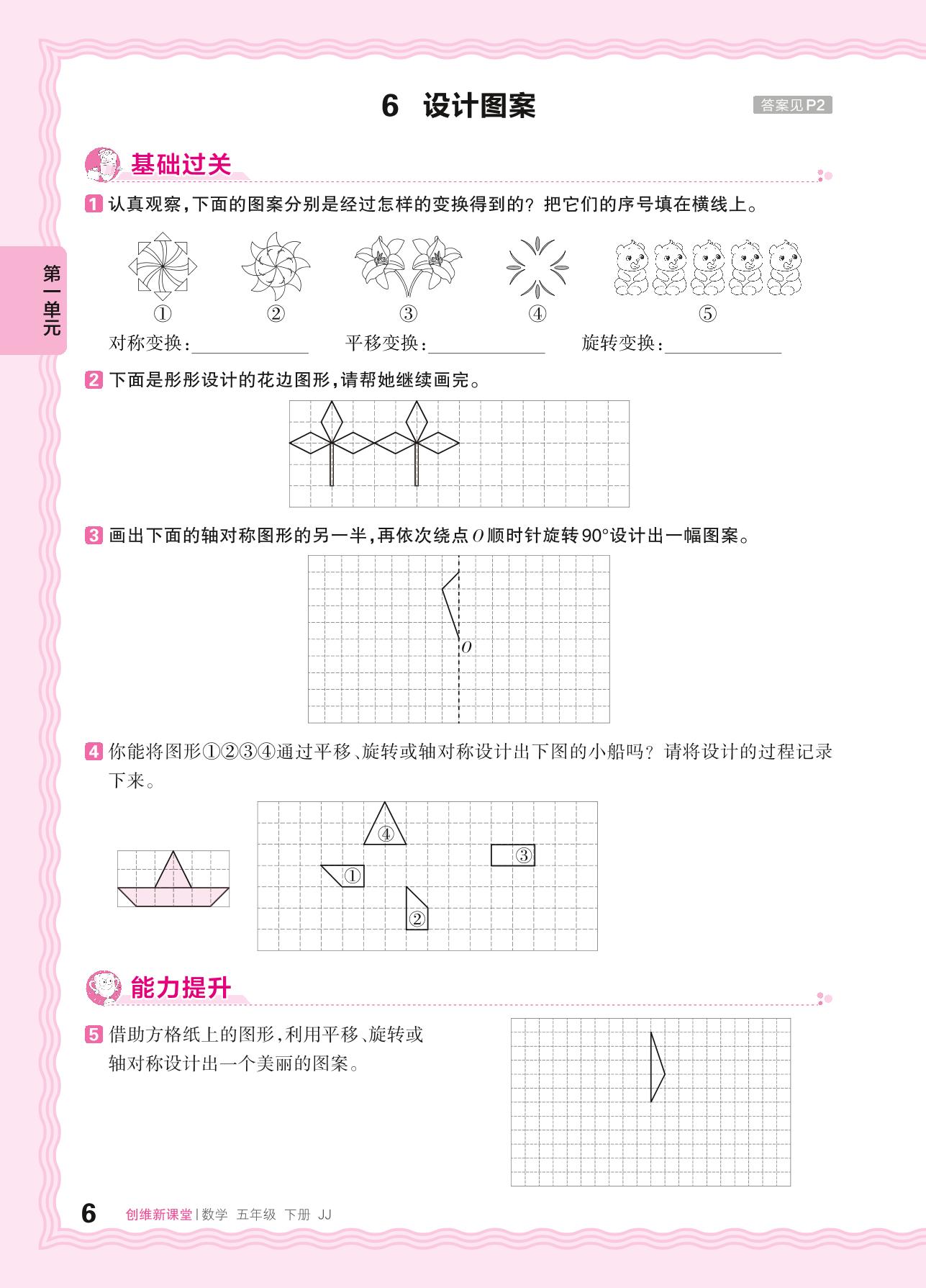 2024春下册五年级数学冀教版 第一单元 图形的运动(二)——6. 设计图案