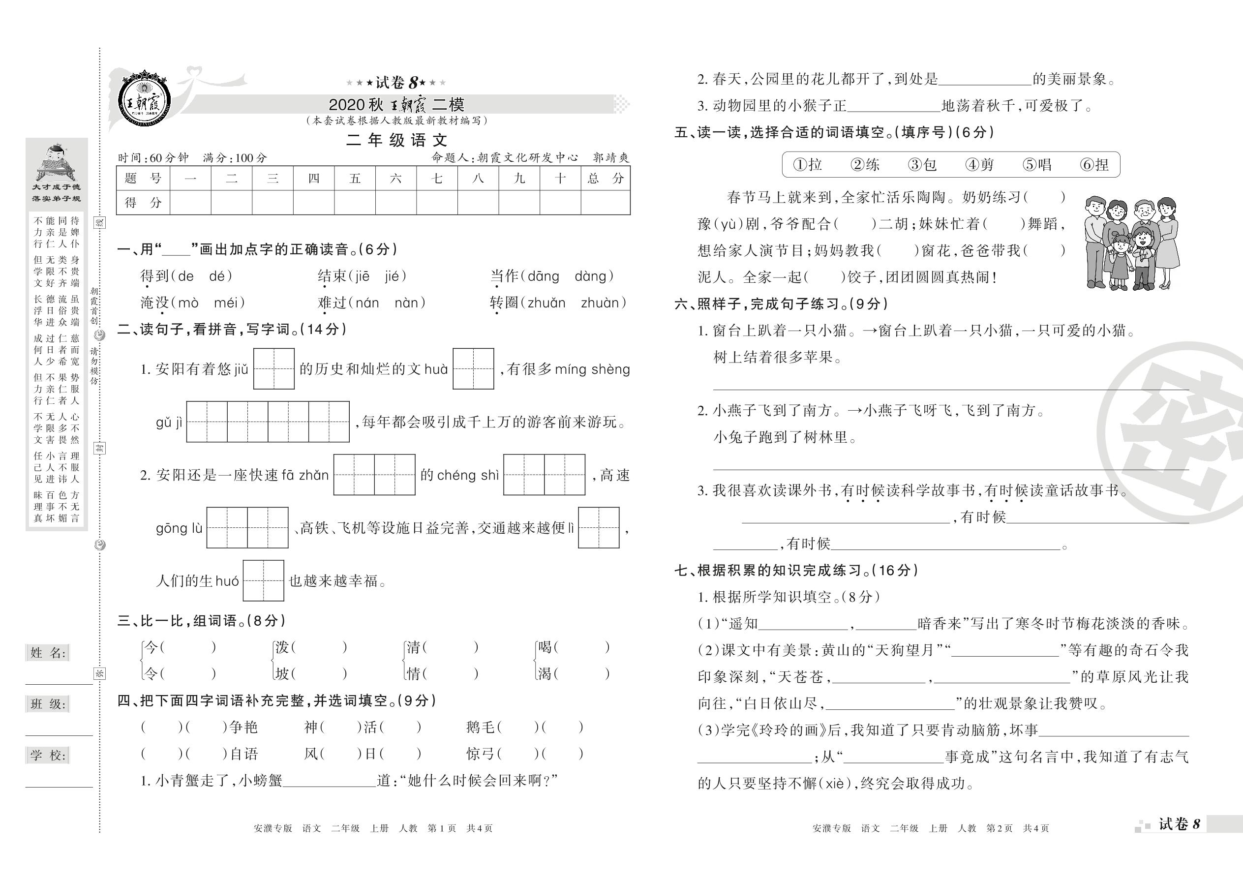 王朝霞期末模拟卷二年级上册语文(人教版)_R21080164623【8】