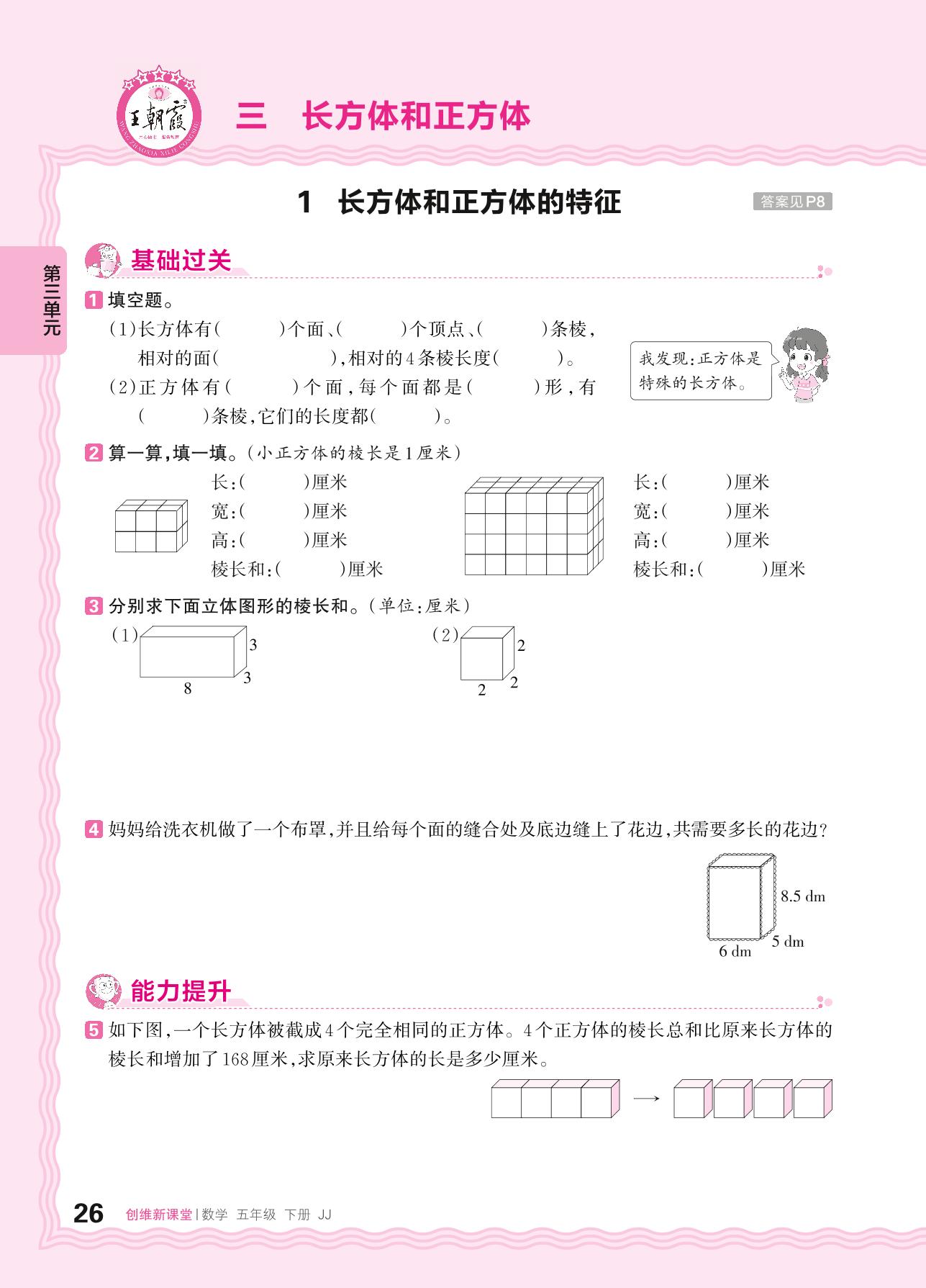 2024春下册五年级数学冀教版 第三单元 长方体和正方体——1. 长方体和正方体的特征