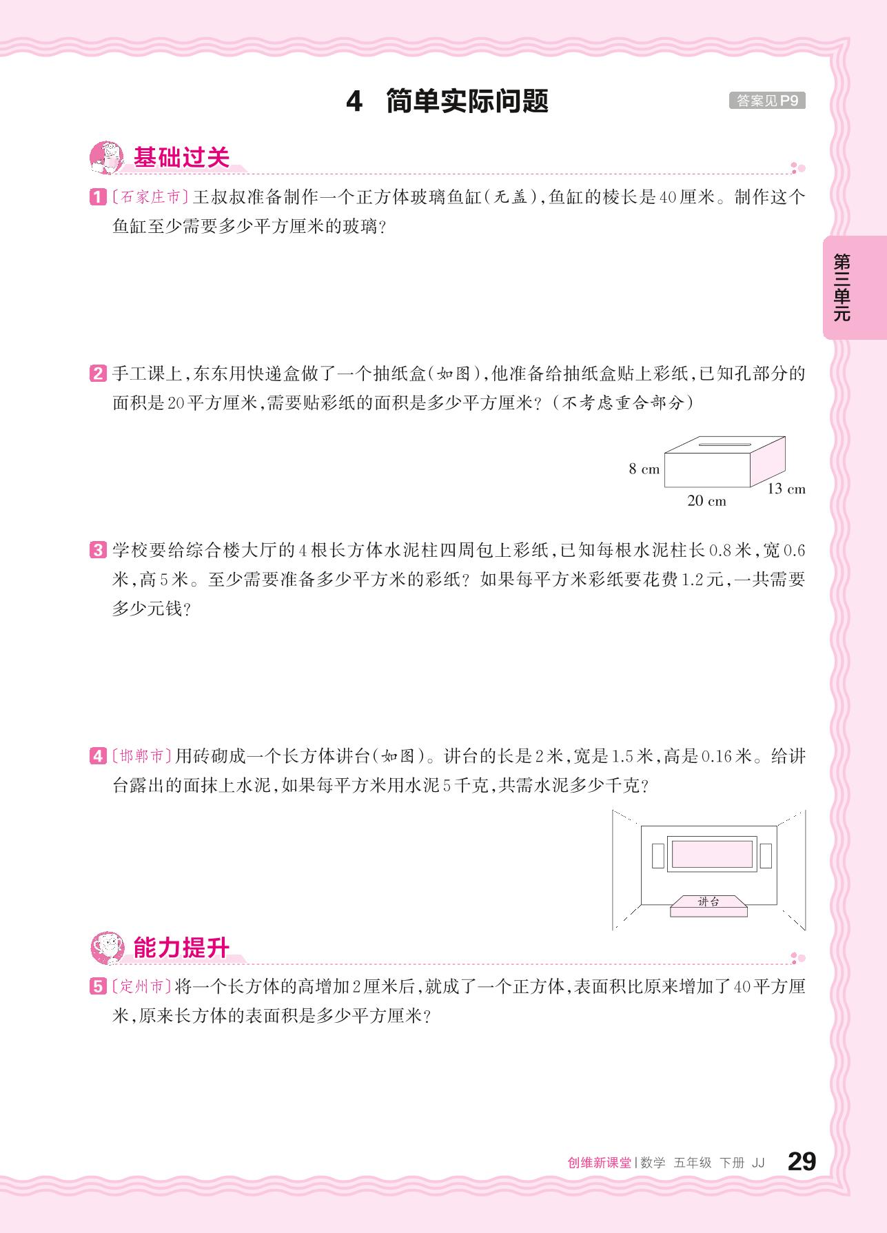 2024春下册五年级数学冀教版 第三单元 长方体和正方体——4. 简单实际问题