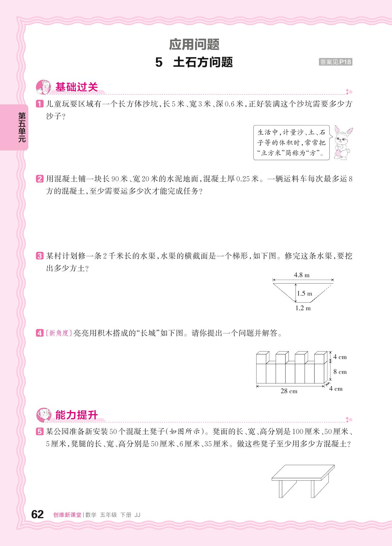 2024春下册五年级数学冀教版 第五单元 长方体和正方体的体积——5. 土石方问题