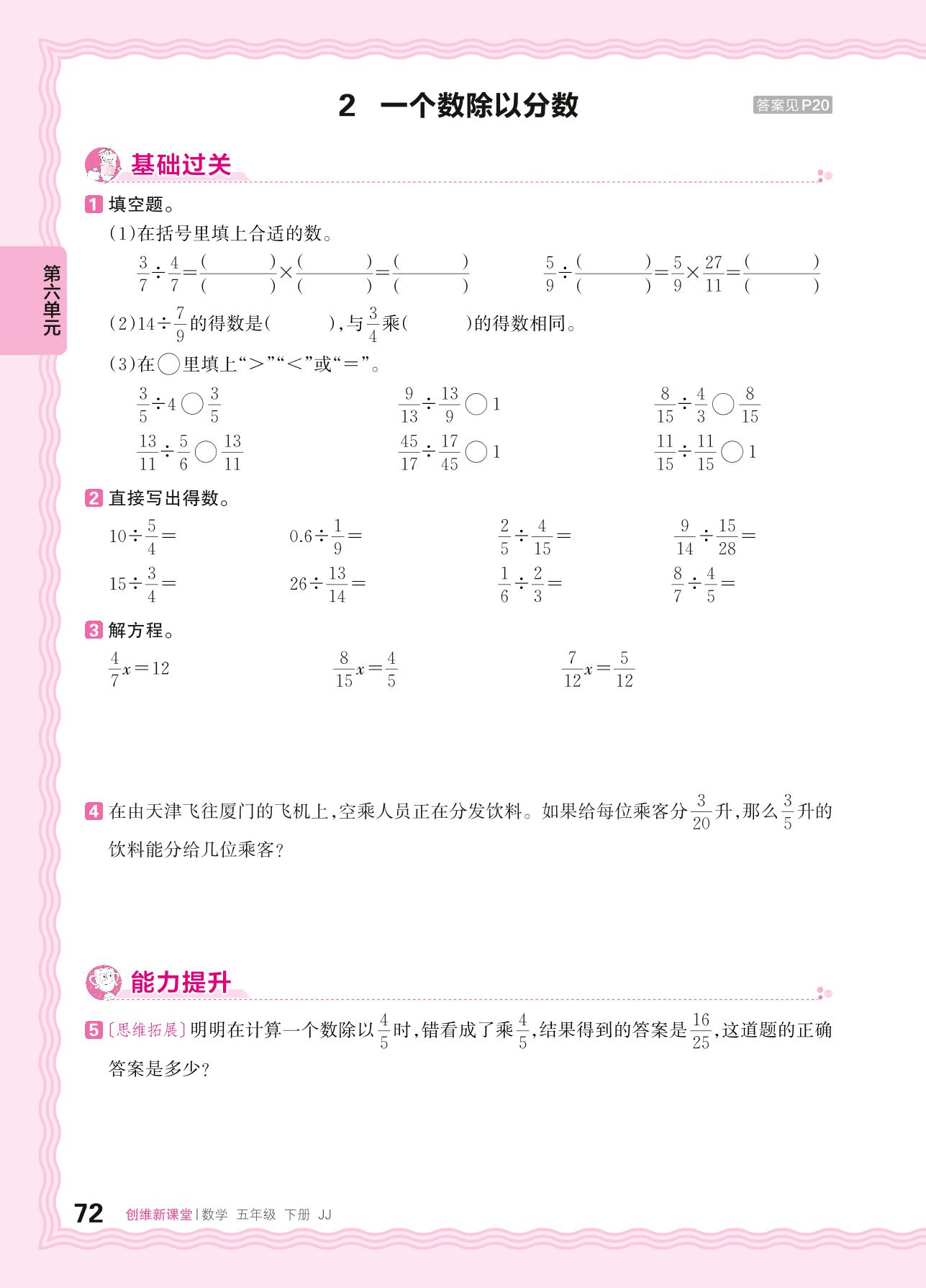 2024春下册五年级数学冀教版 第六单元 分数除法——2. 一个数除以分数