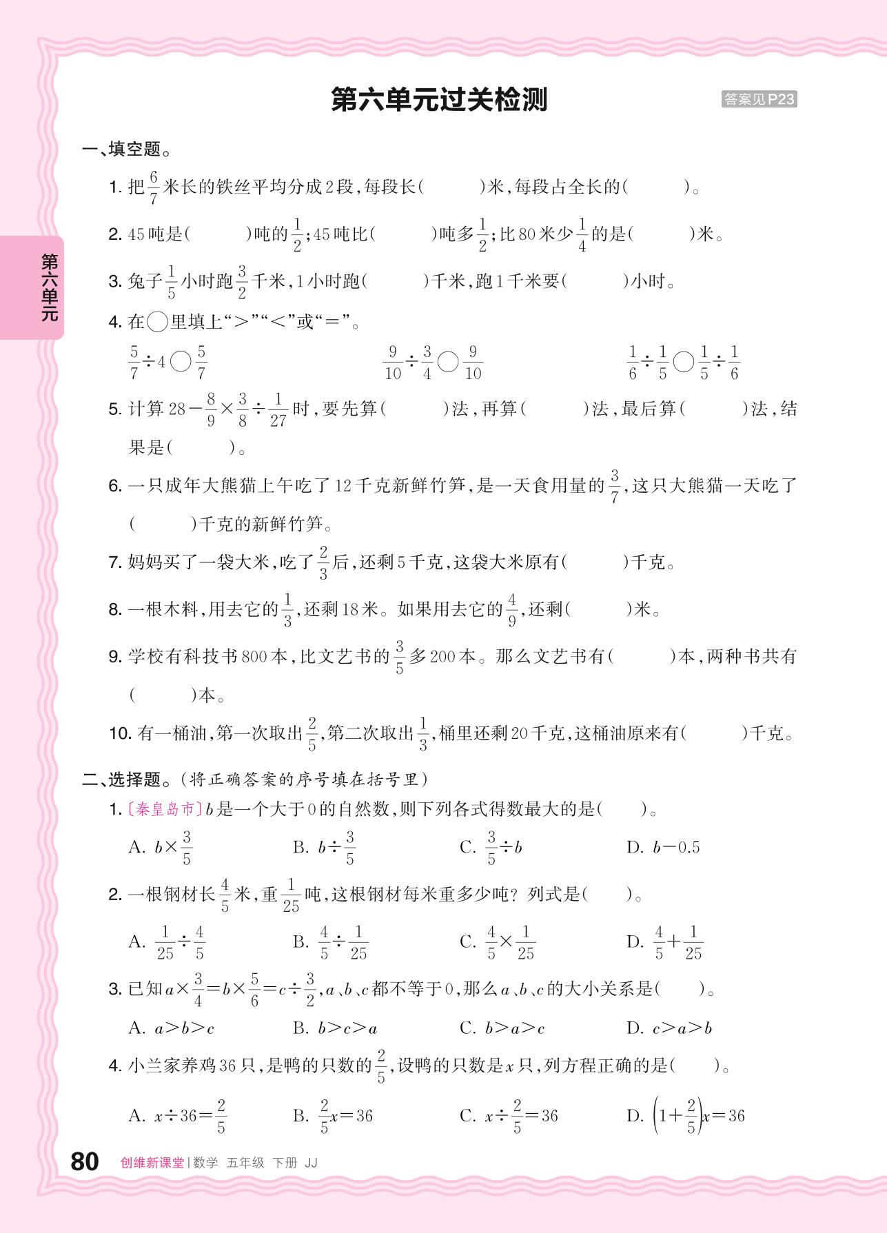 五年级数学冀教版下册单元卷