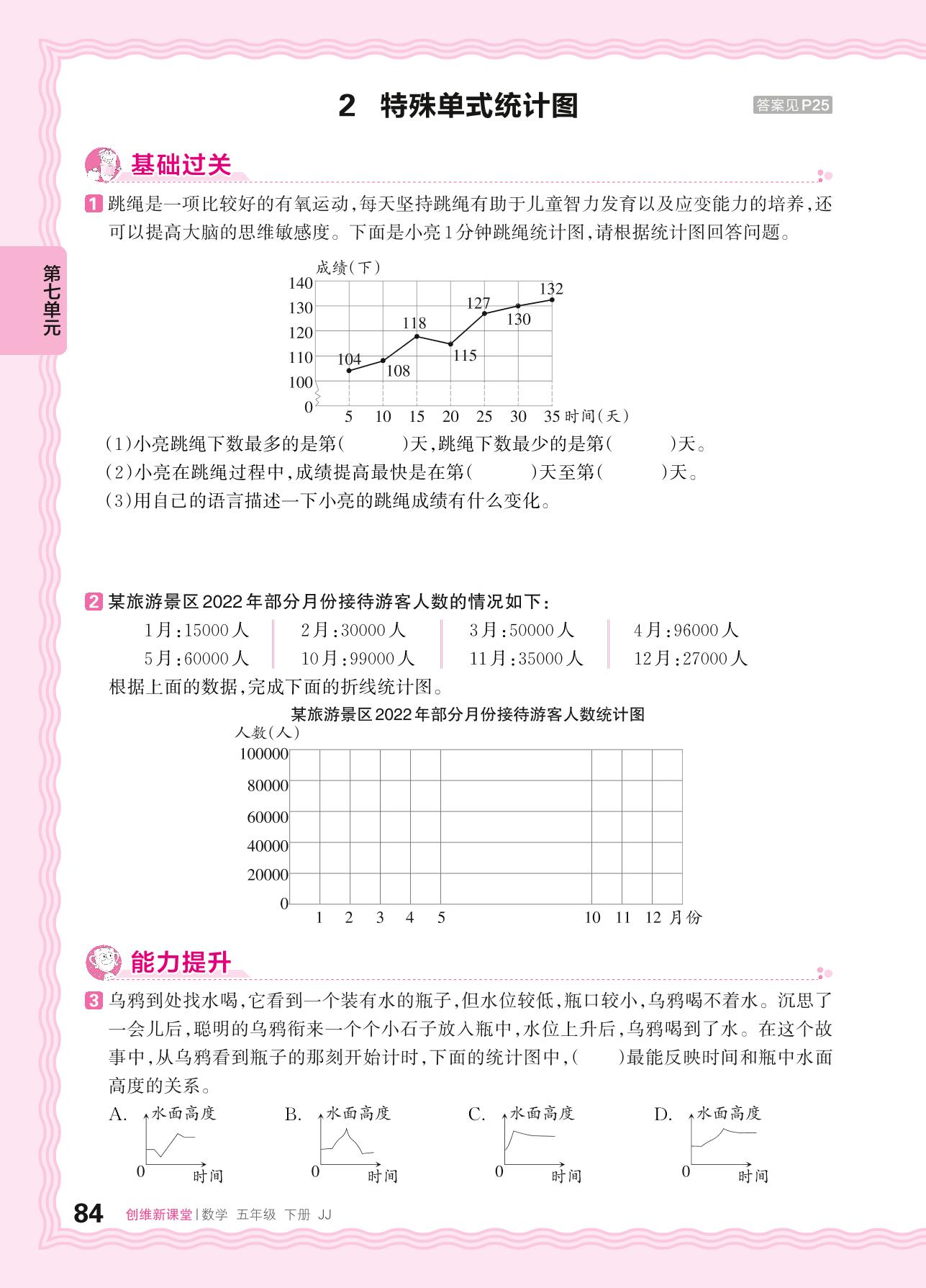 2024春下册五年级数学冀教版 第七单元 折线统计图——2. 特殊单式统计图