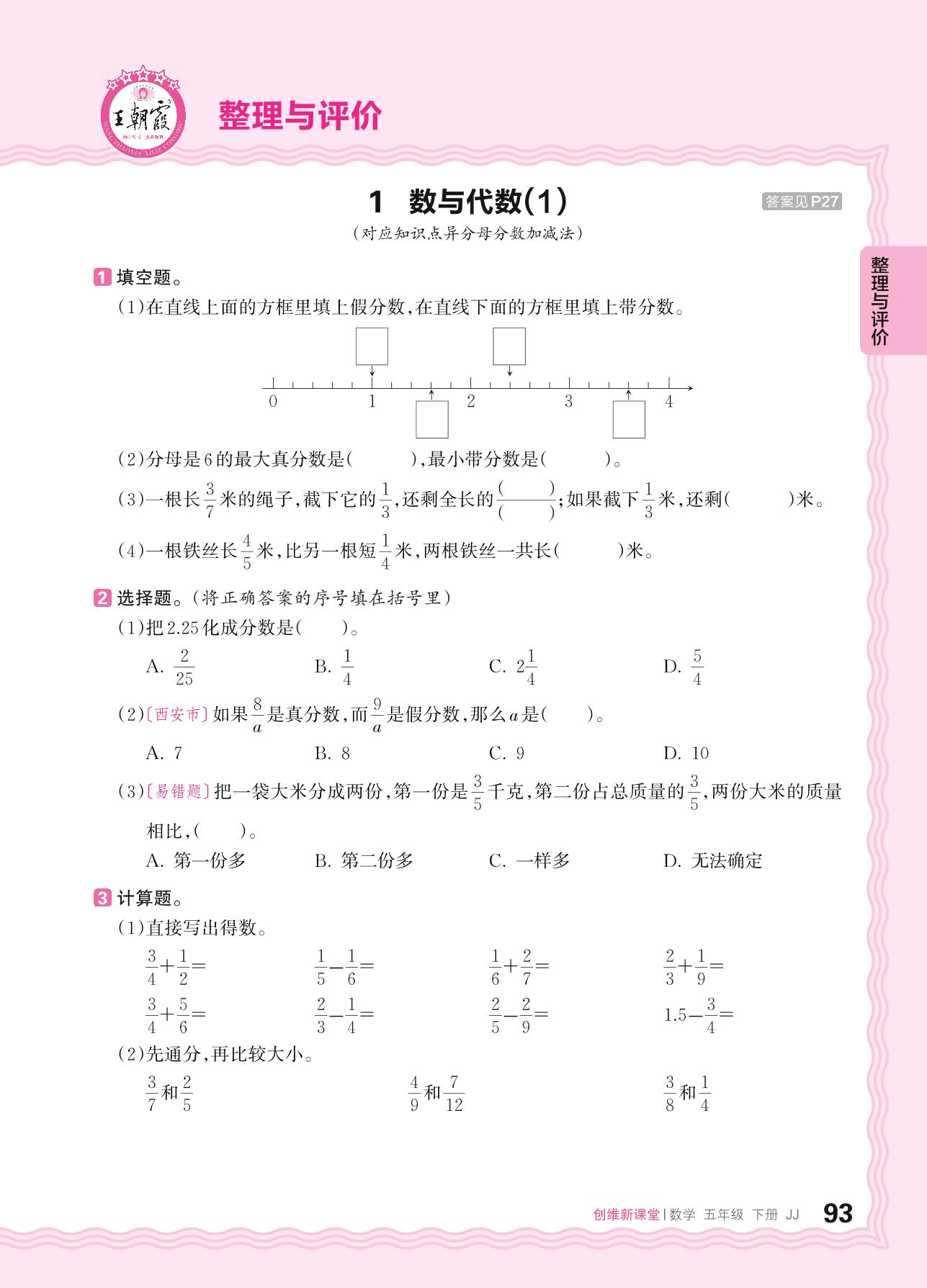 2024春下册五年级数学冀教版 整理与评价——1. 数与代数(1)