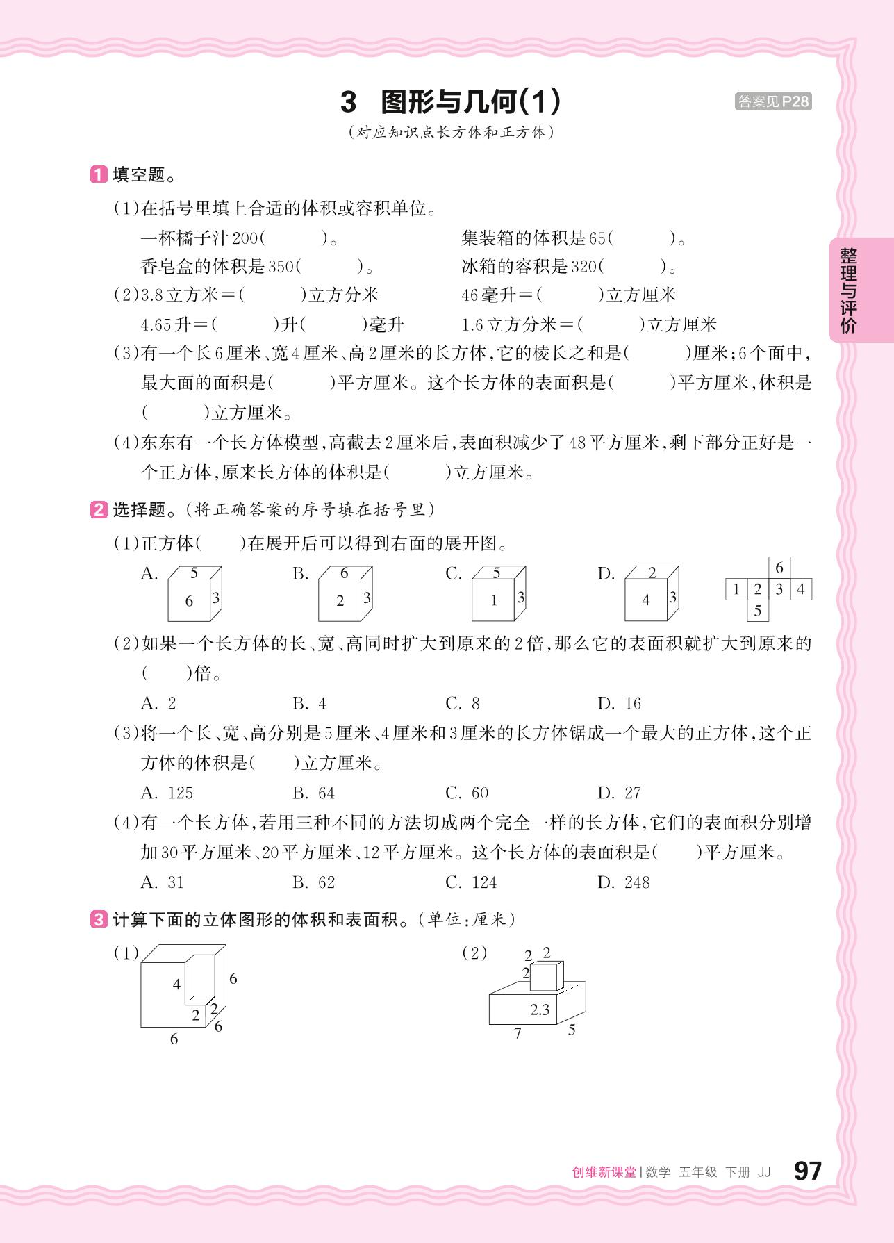 2024春下册五年级数学冀教版 整理与评价——3. 图形与几何(1)
