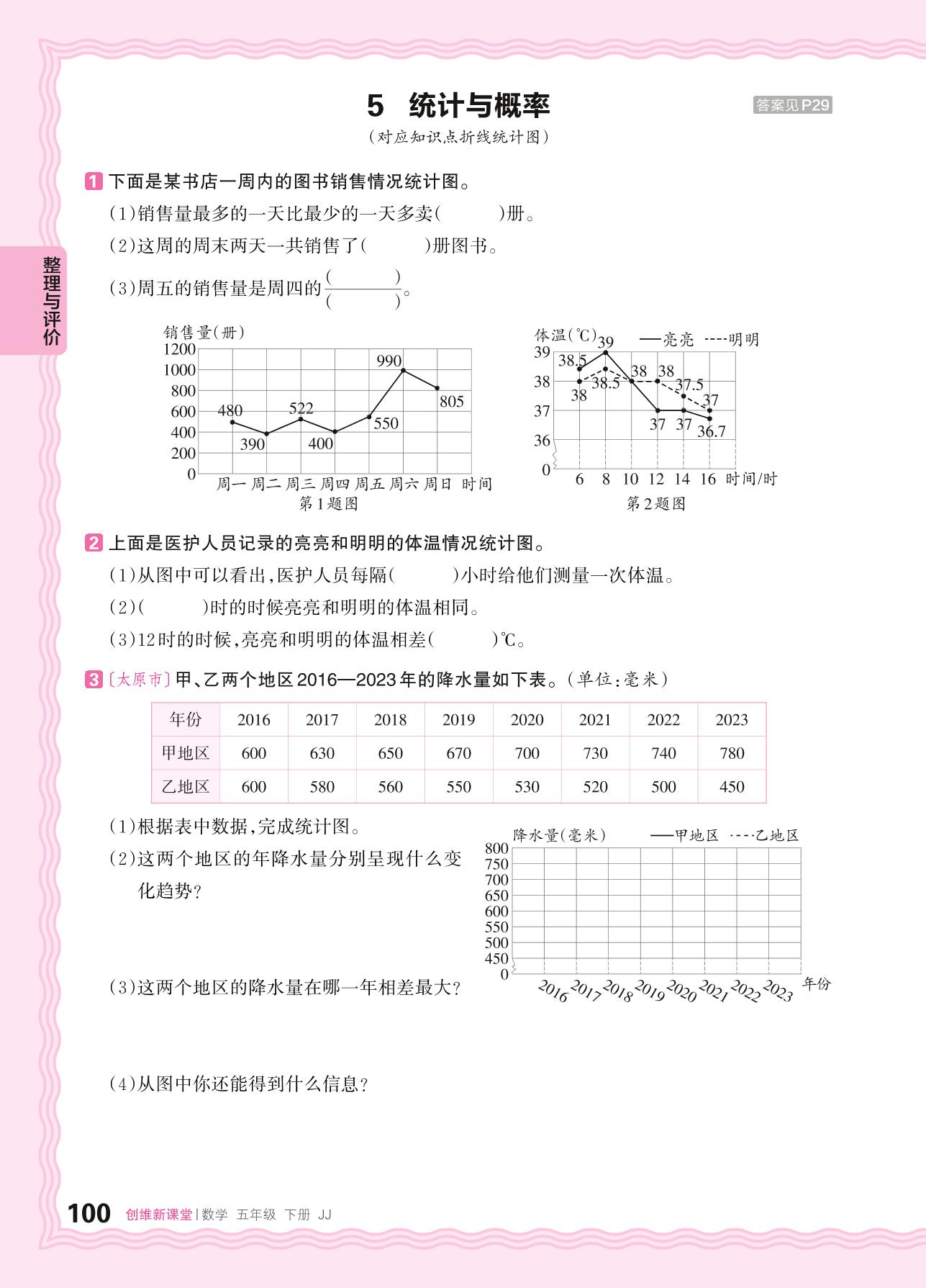 2024春下册五年级数学冀教版 整理与评价——5. 统计与概率