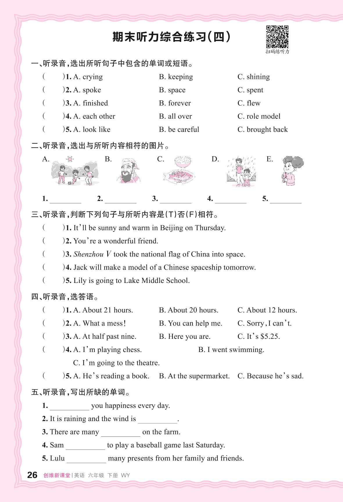 2024春下册六年级英语外研版 期末听力综合练习(四)
