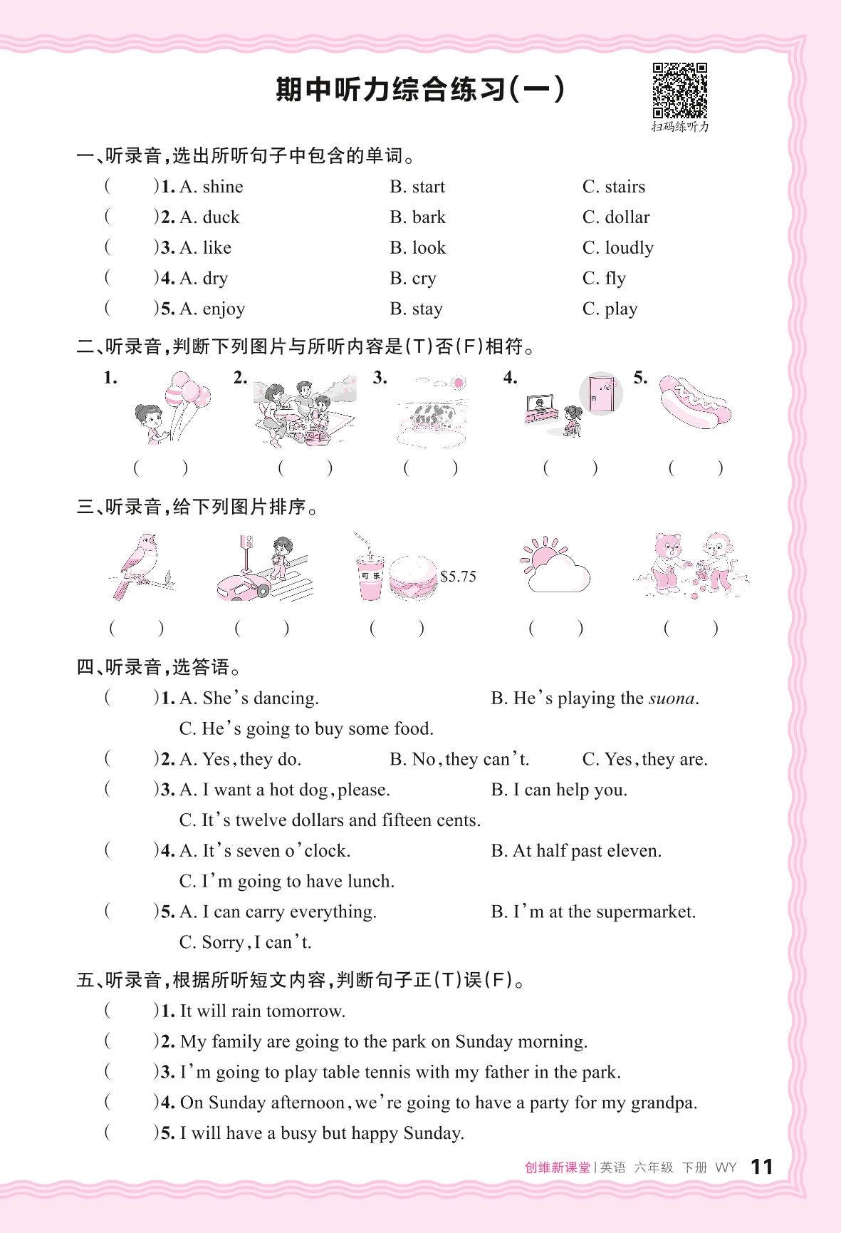 2024春下册六年级英语外研版 期中听力综合练习(一)