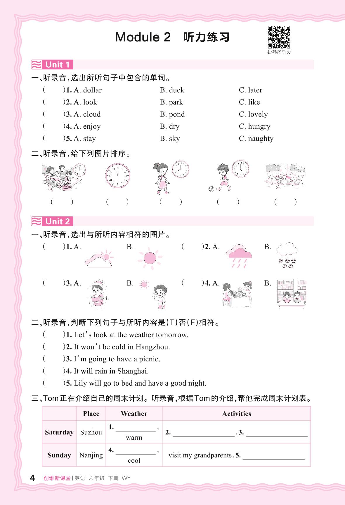 2024春下册六年级英语外研版 Module 2 听力练习