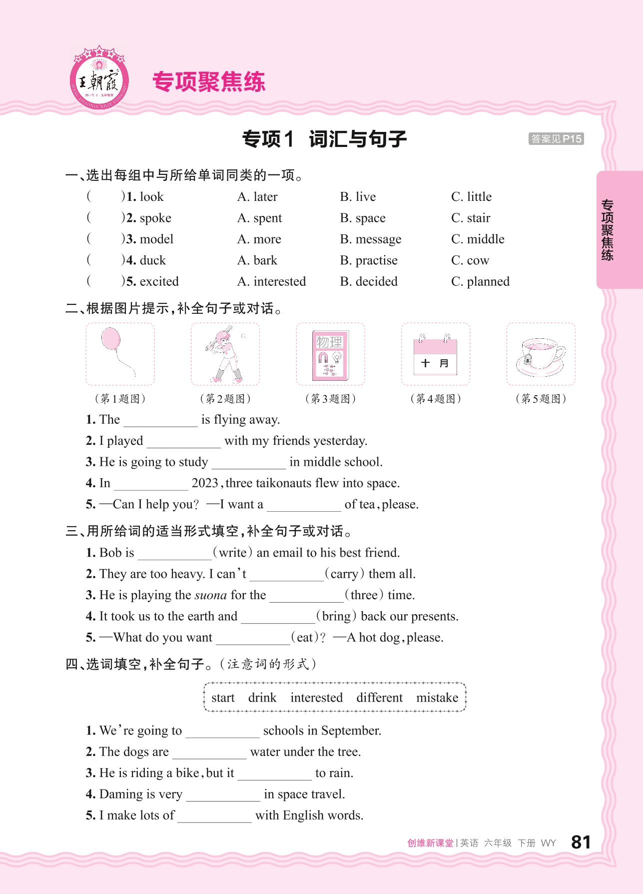 2024春下册六年级英语外研版 期末专项聚焦练——词汇与句子【1】