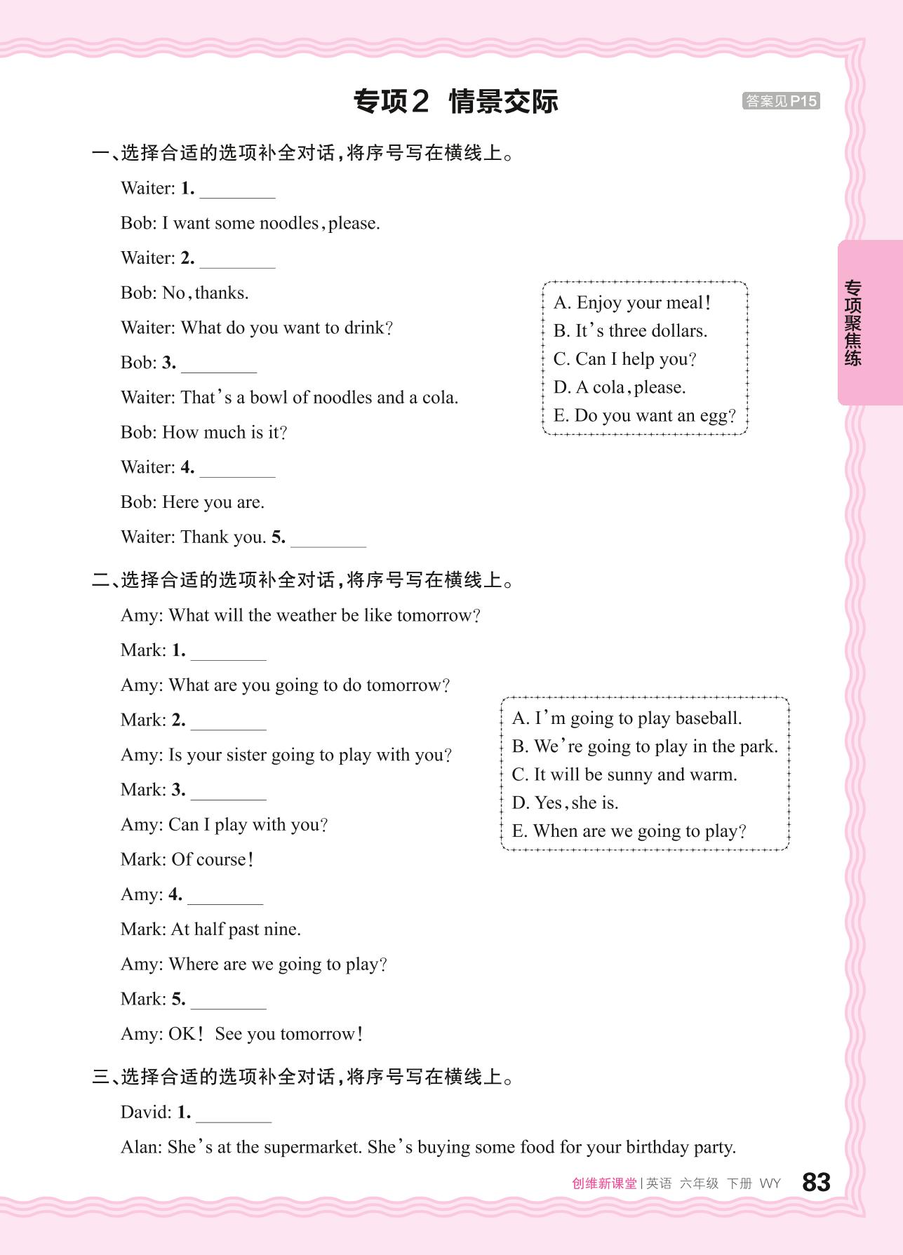 2024春下册六年级英语外研版 期末专项聚焦练——情景交际【2】