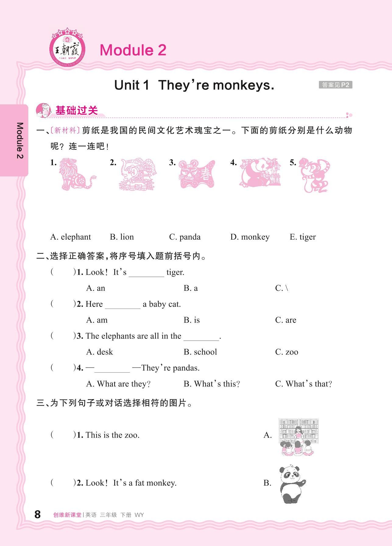 2024春下册三年级英语外研版 Module 2—Unit 1 They're monkeys.