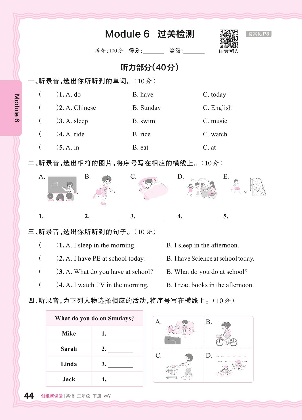 2024春下册三年级英语外研版 Module 6 过关检测