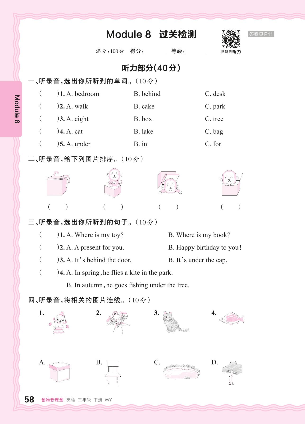 2024春下册三年级英语外研版 Module 8 过关检测