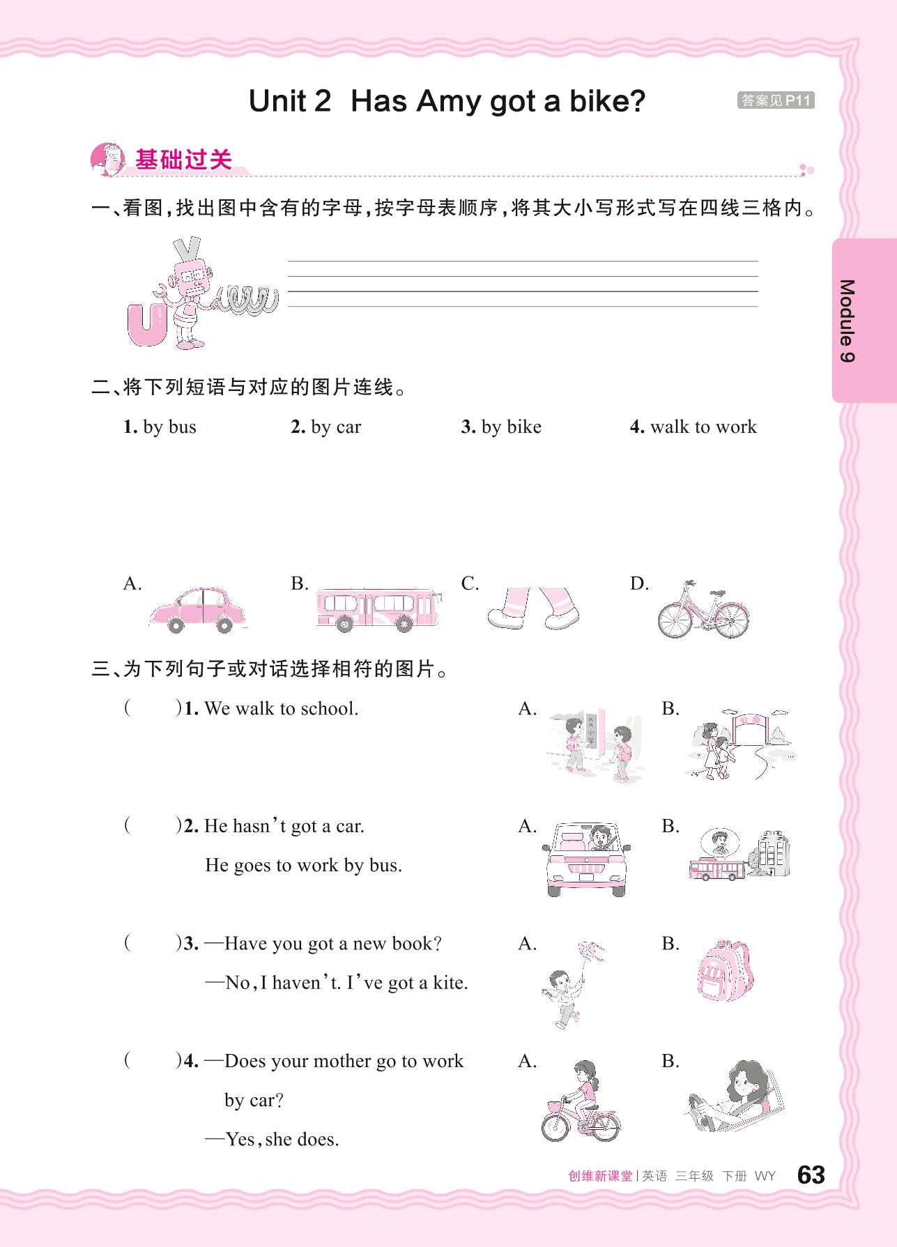 2024春下册三年级英语外研版 Module 9—Unit 2 Has Amy got a bike?