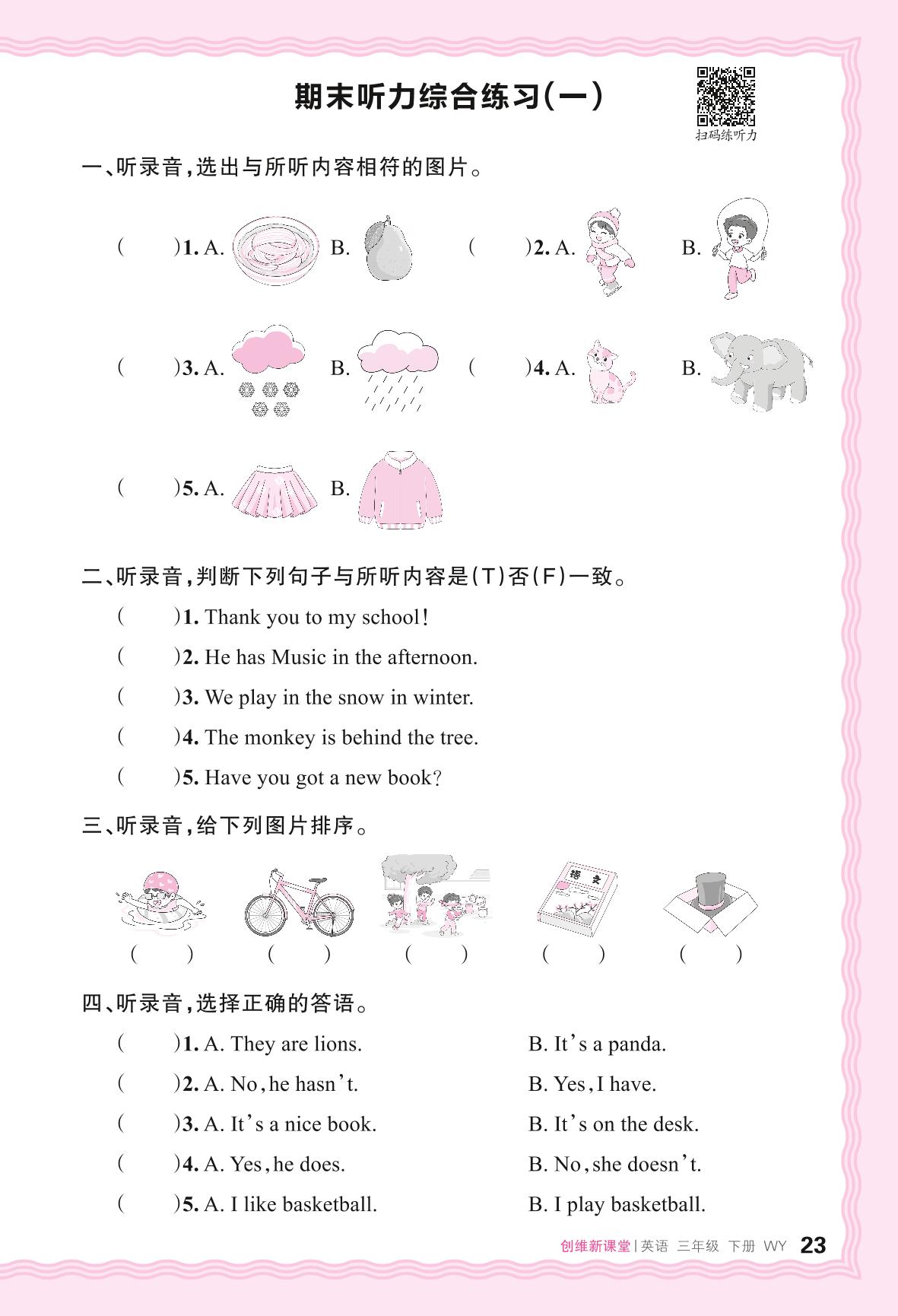 2024春下册三年级英语外研版 期末听力综合练习(一)
