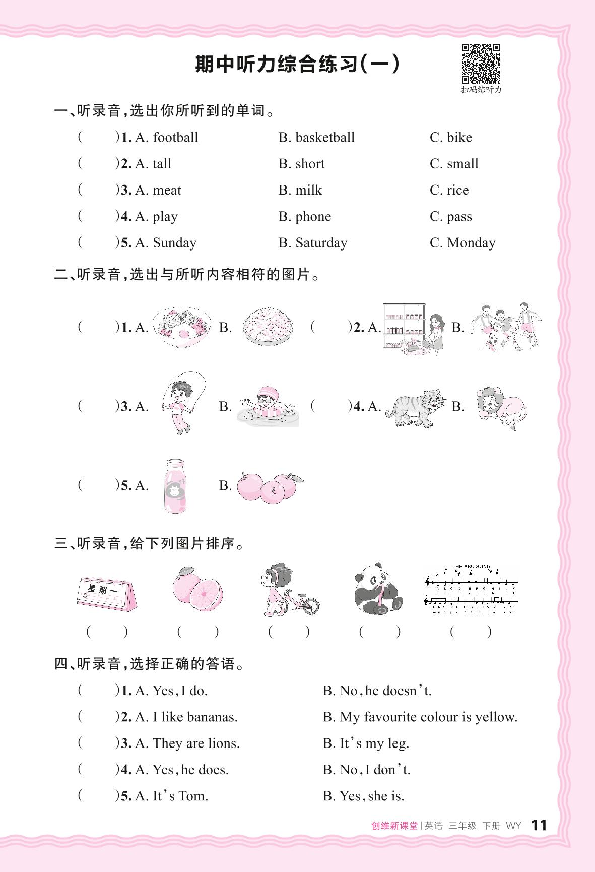 2024春下册三年级英语外研版 期中听力综合练习(一)