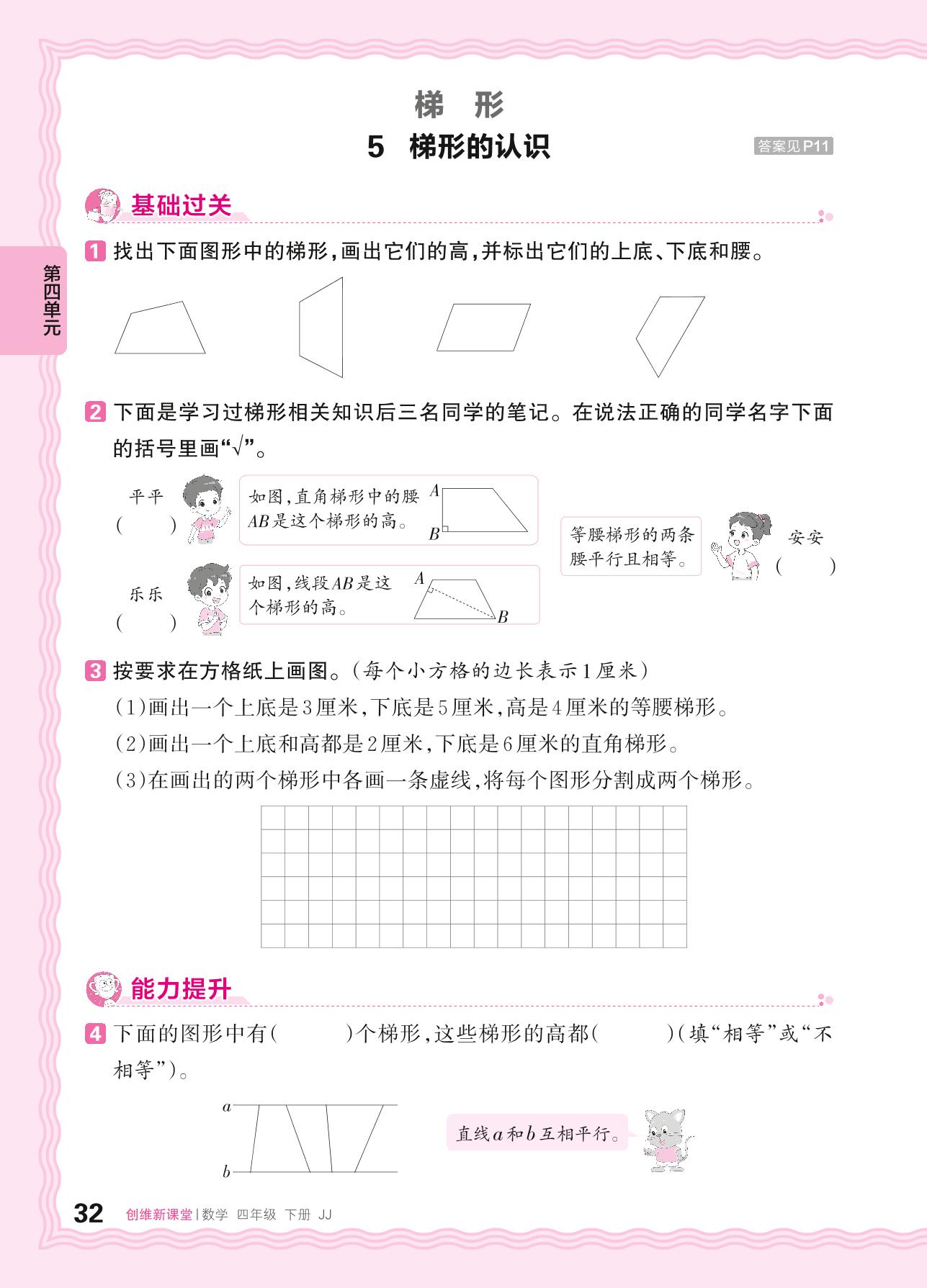 2024春下册四年级数学冀教版 第四单元 多边形的认识——5. 梯形的认识