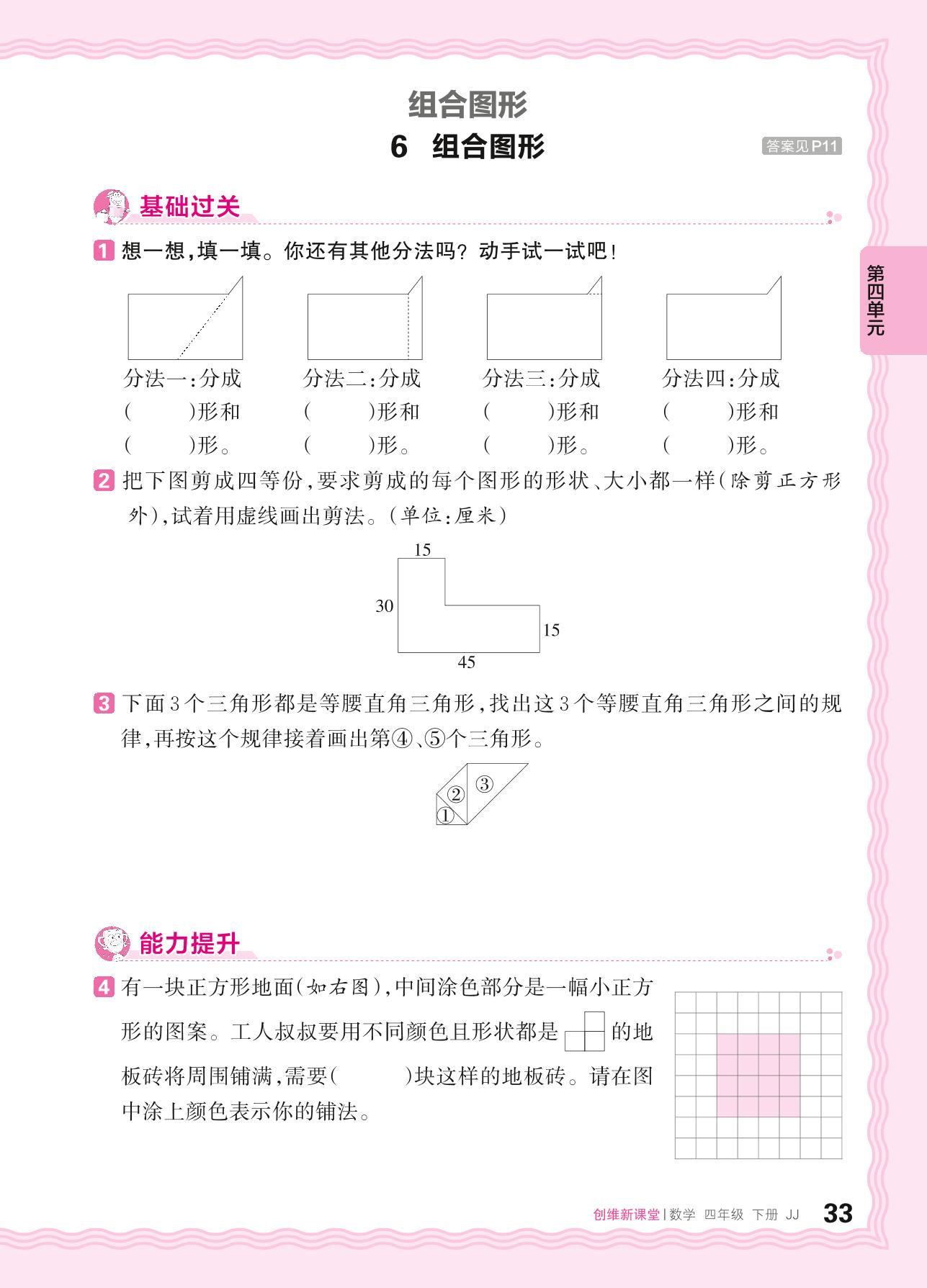 2024春下册四年级数学冀教版 第四单元 多边形的认识——6. 组合图形