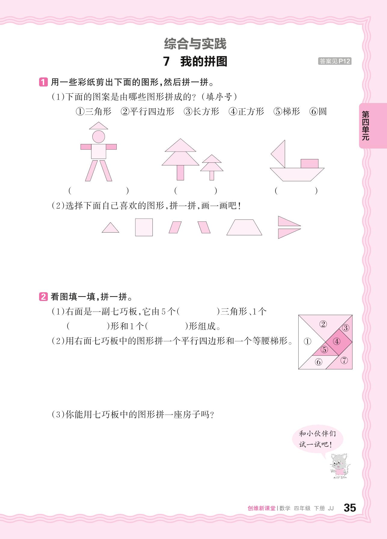 2024春下册四年级数学冀教版 第四单元 多边形的认识——我的拼图