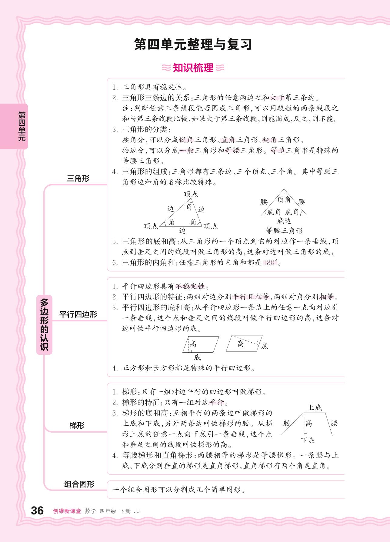 2024春下册四年级数学冀教版 第四单元整理与复习