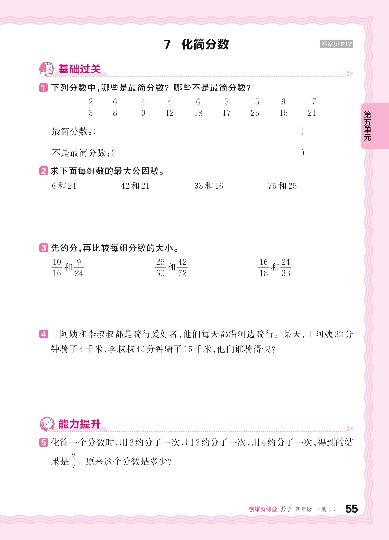 2024春下册四年级数学冀教版 第五单元 分数的意义和性质——7. 化简分数